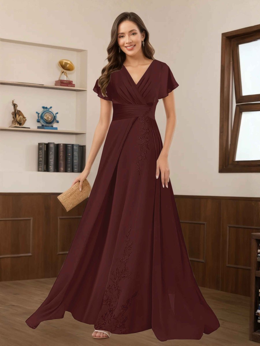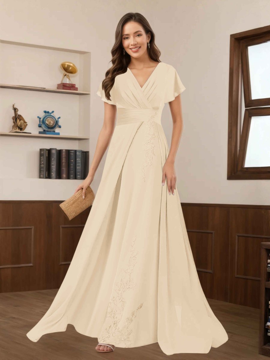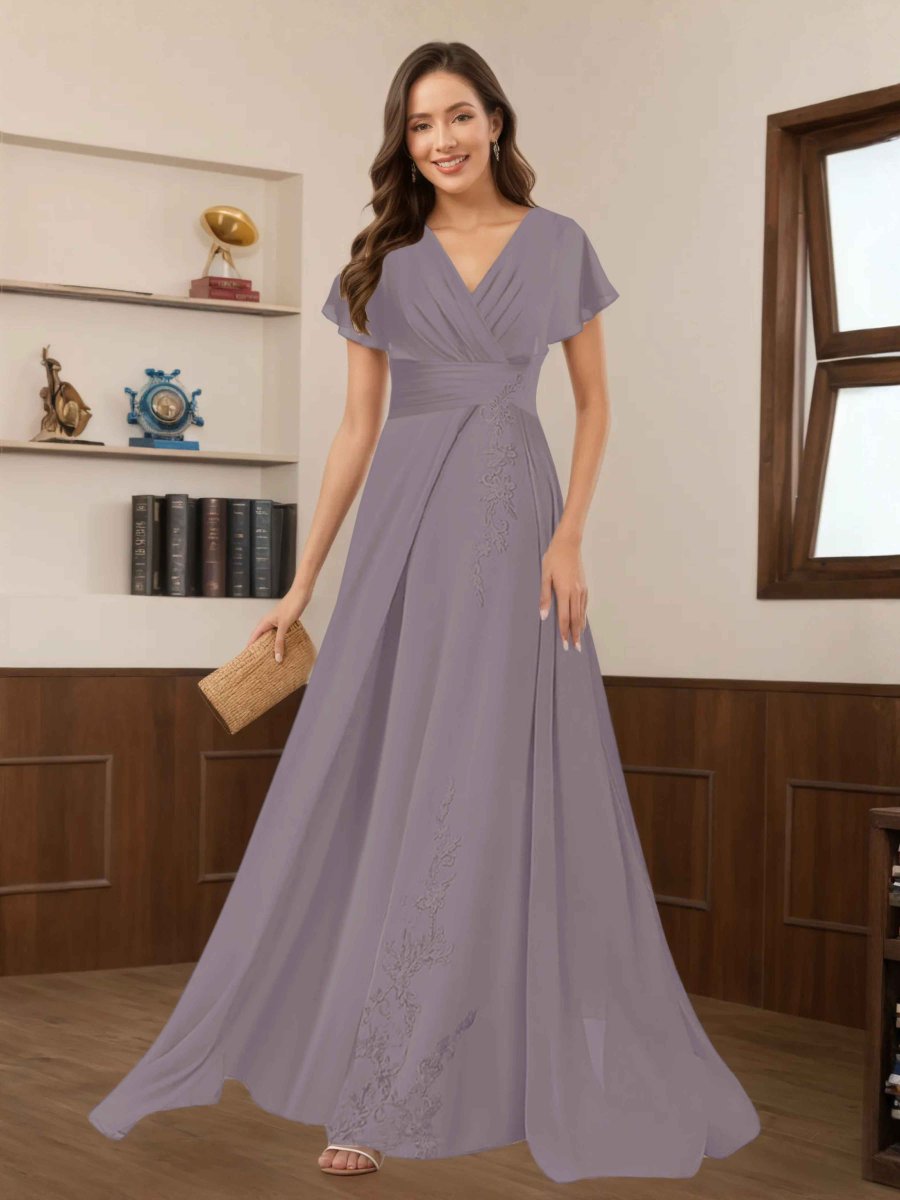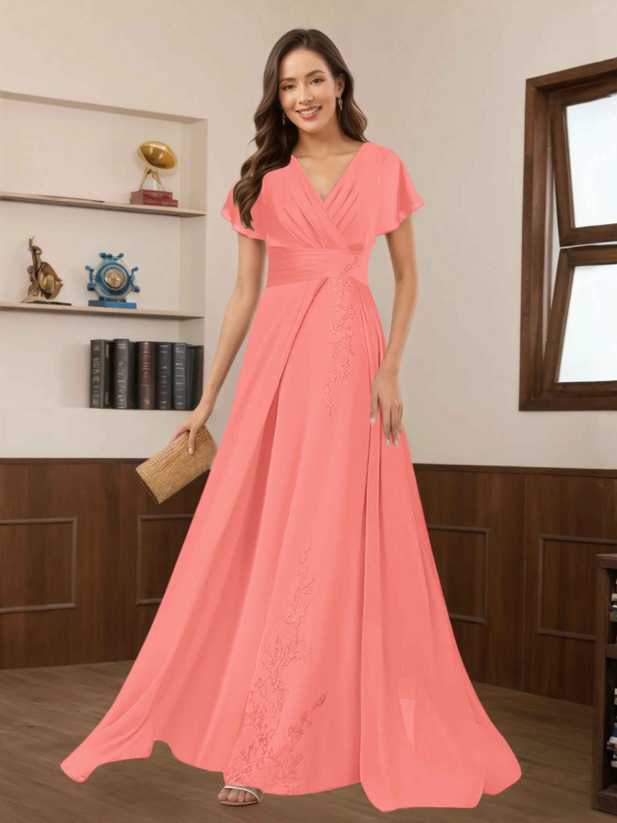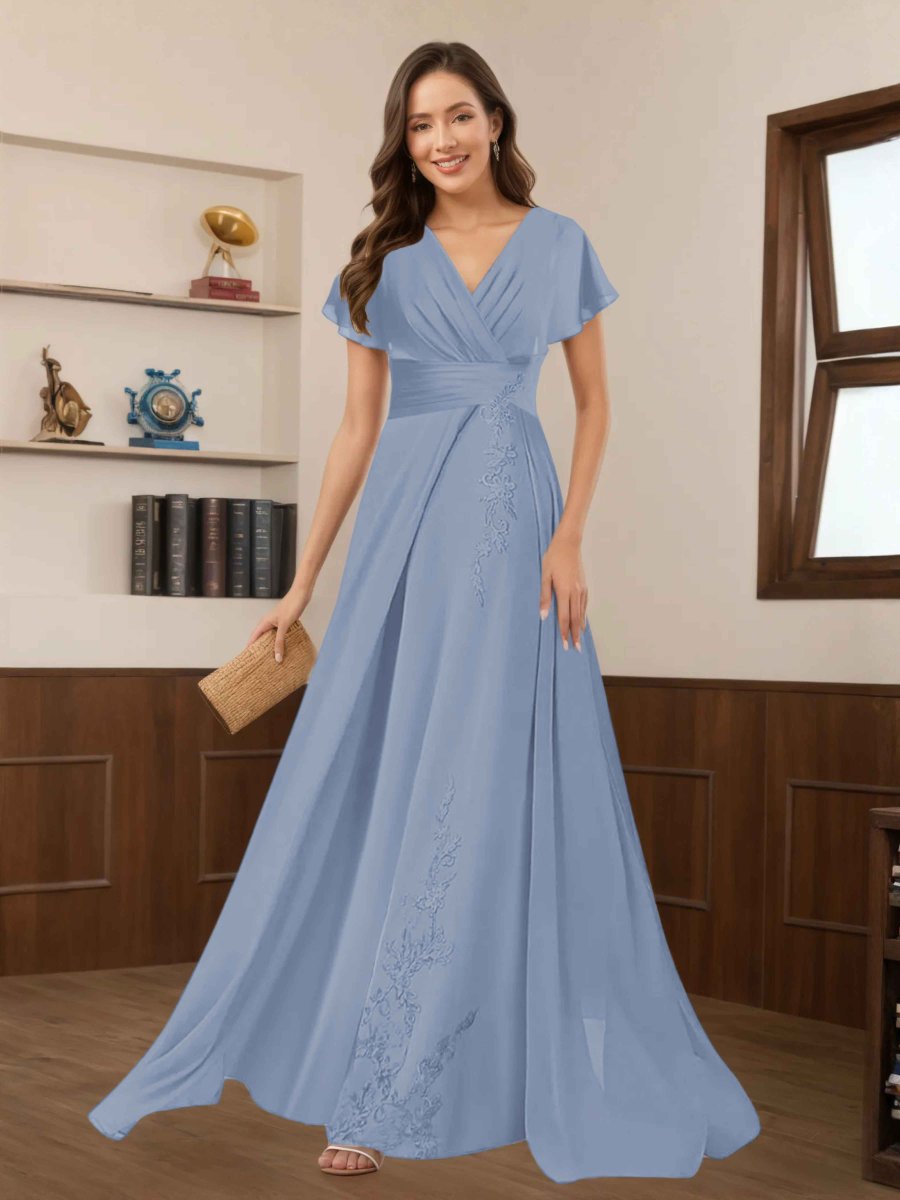 Robes Mère De La Mariée En Mousseline À Dentelle Appliqués Ruché Seraphina