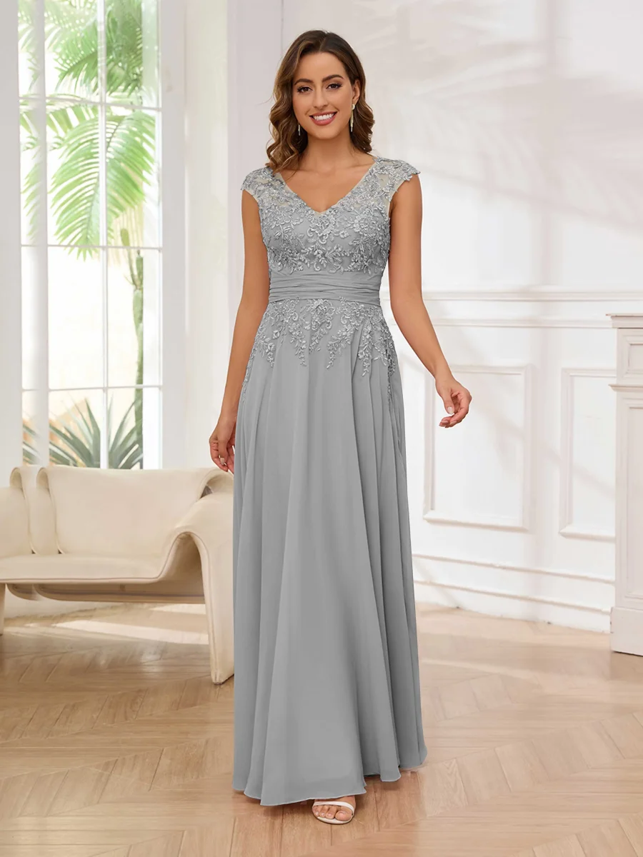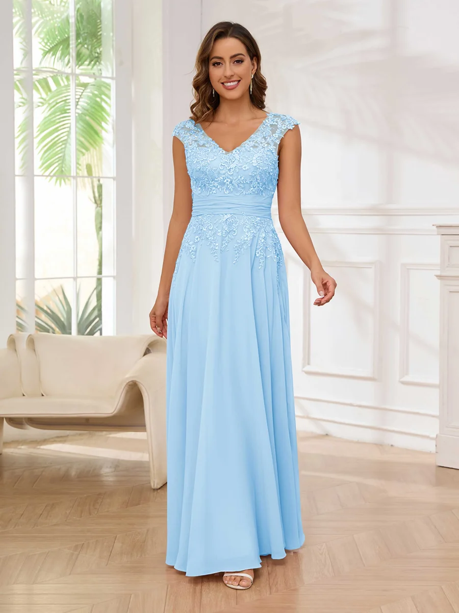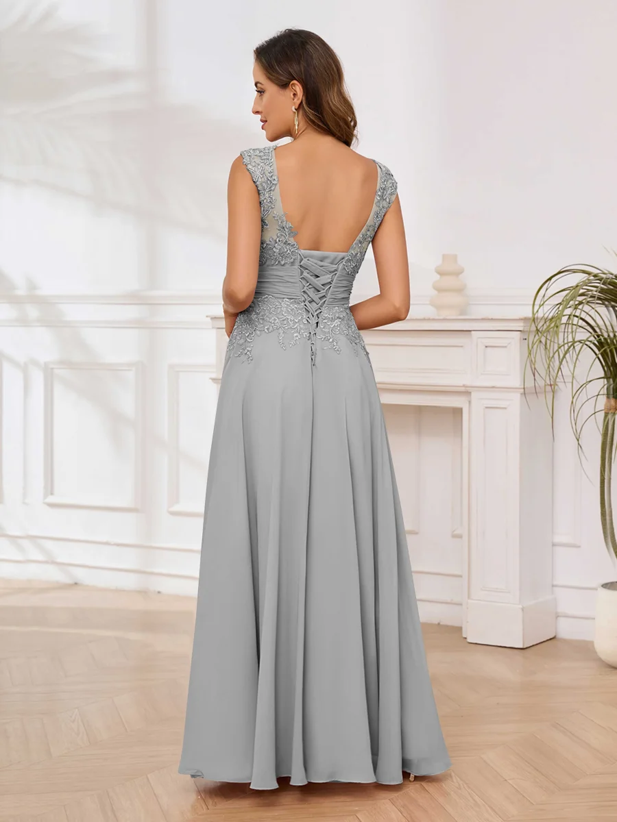 Robes Mère De La Mariée En Mousseline À Dentelle Appliqués Sans Manches Ailani