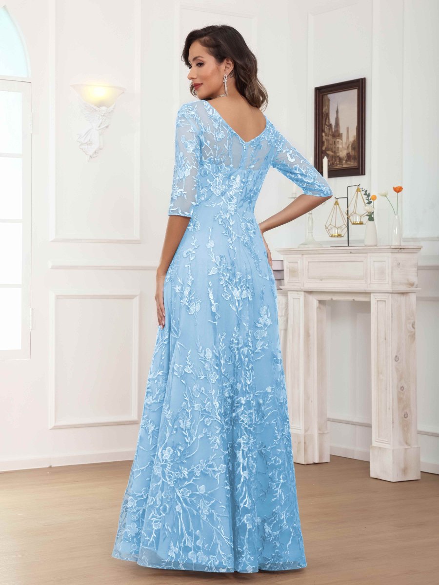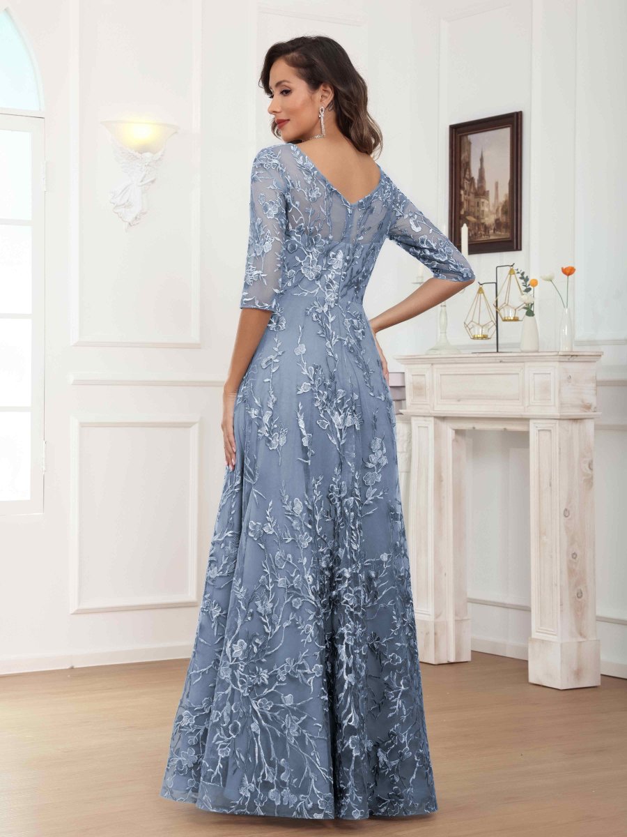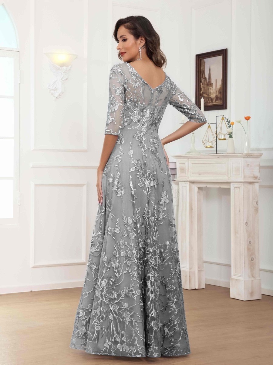 Mère De Mariée En Velours À Glamoureux A-ligne Col V Manches Longues Longueur Au Sol Una