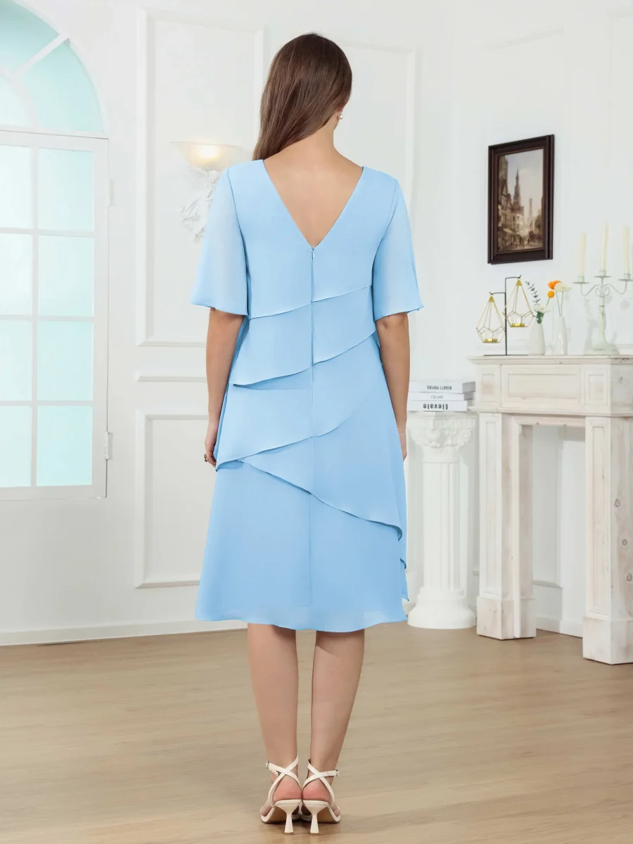 Robes Mère De La Mariée En Mousseline À Manches Courtes Viatrix