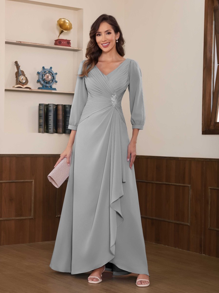 Robes Mère De La Mariée En Mousseline À Manches Longues Appliqués Ginevra
