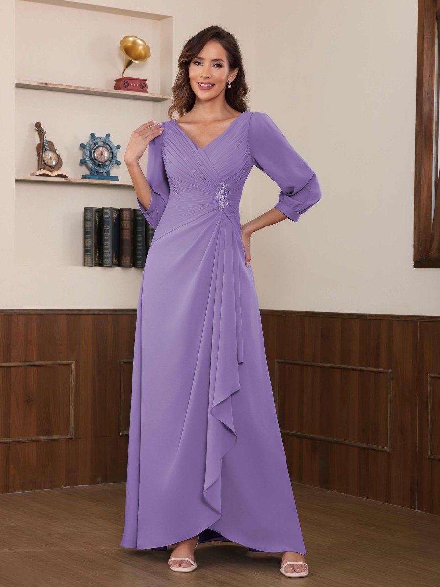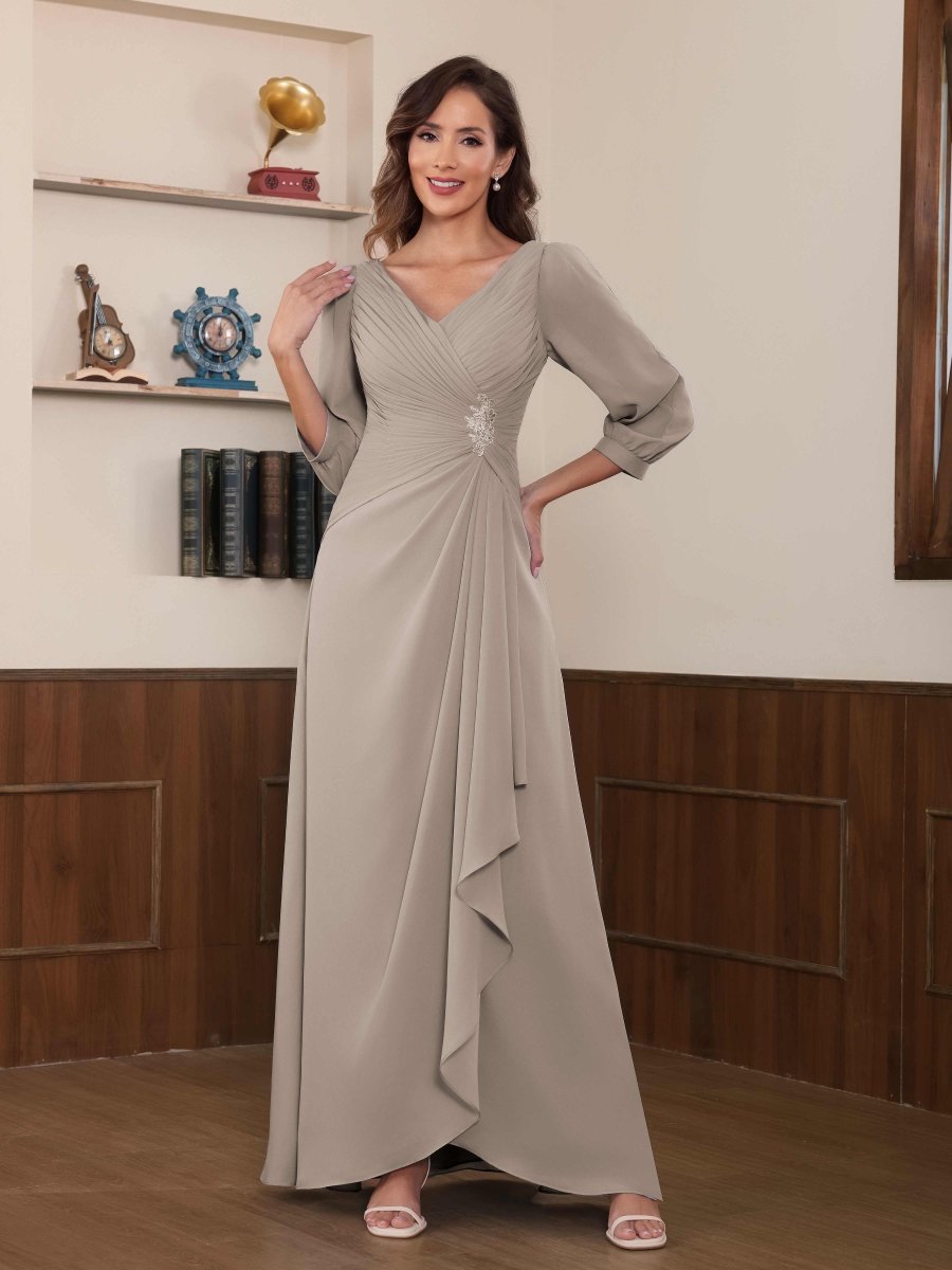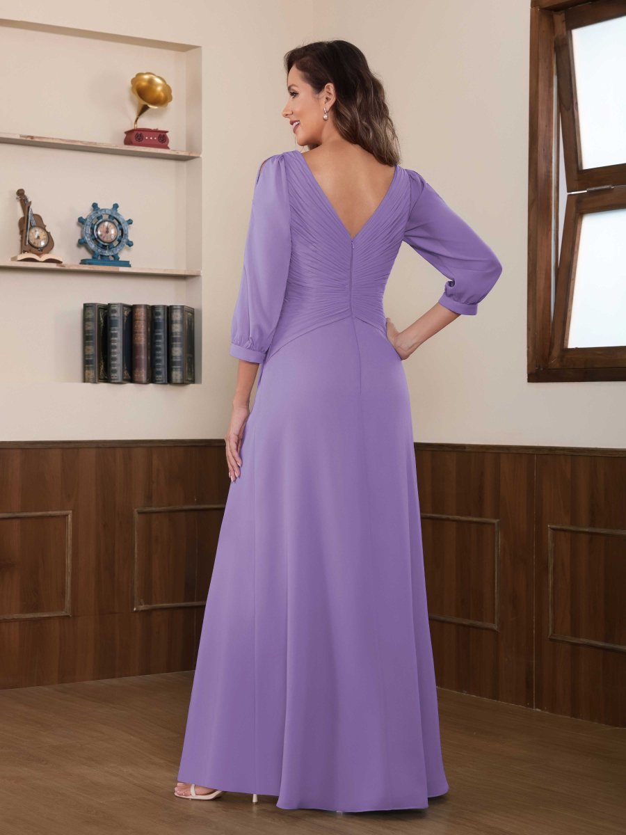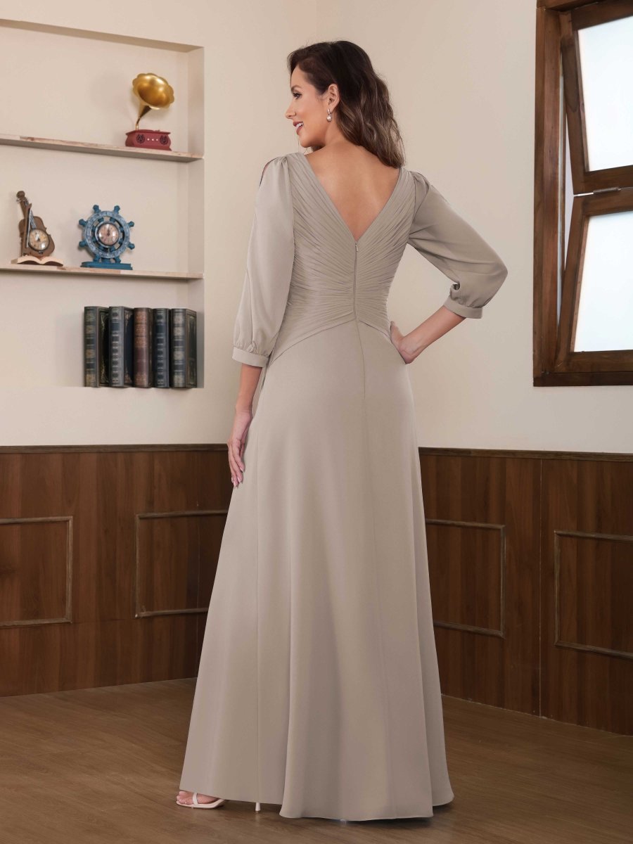 Mère De Mariée En Mousseline À Intellectuelle Trompette Col V Longueur Au Sol Aeliana