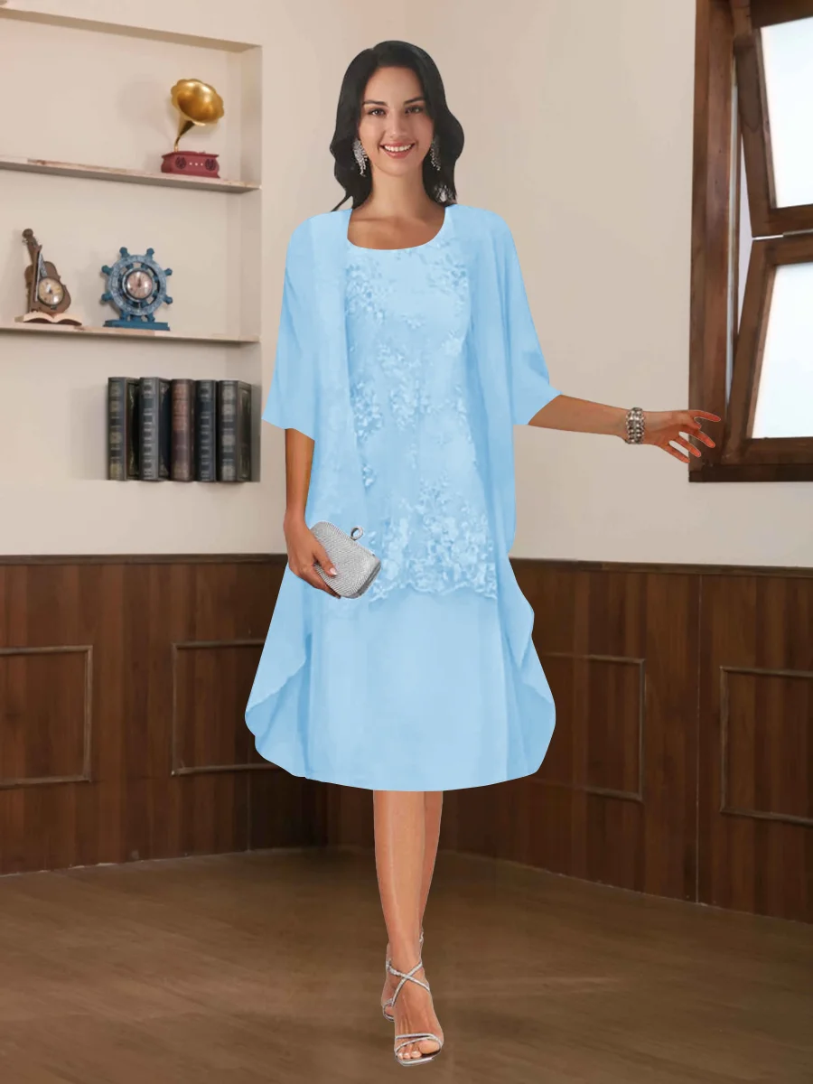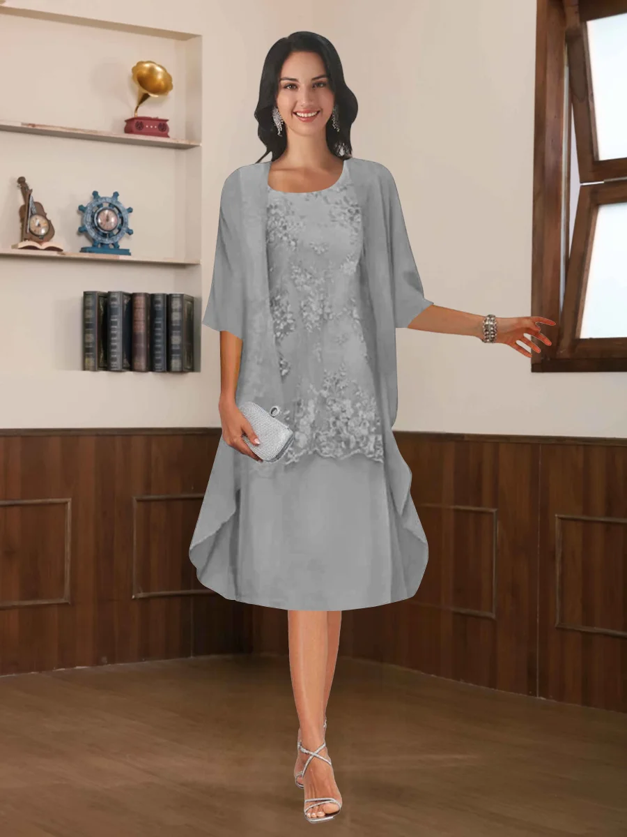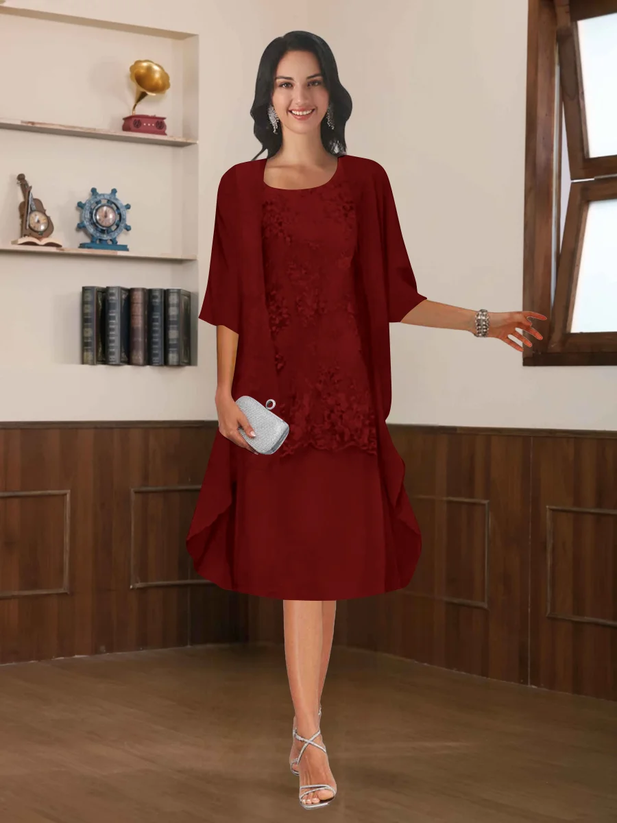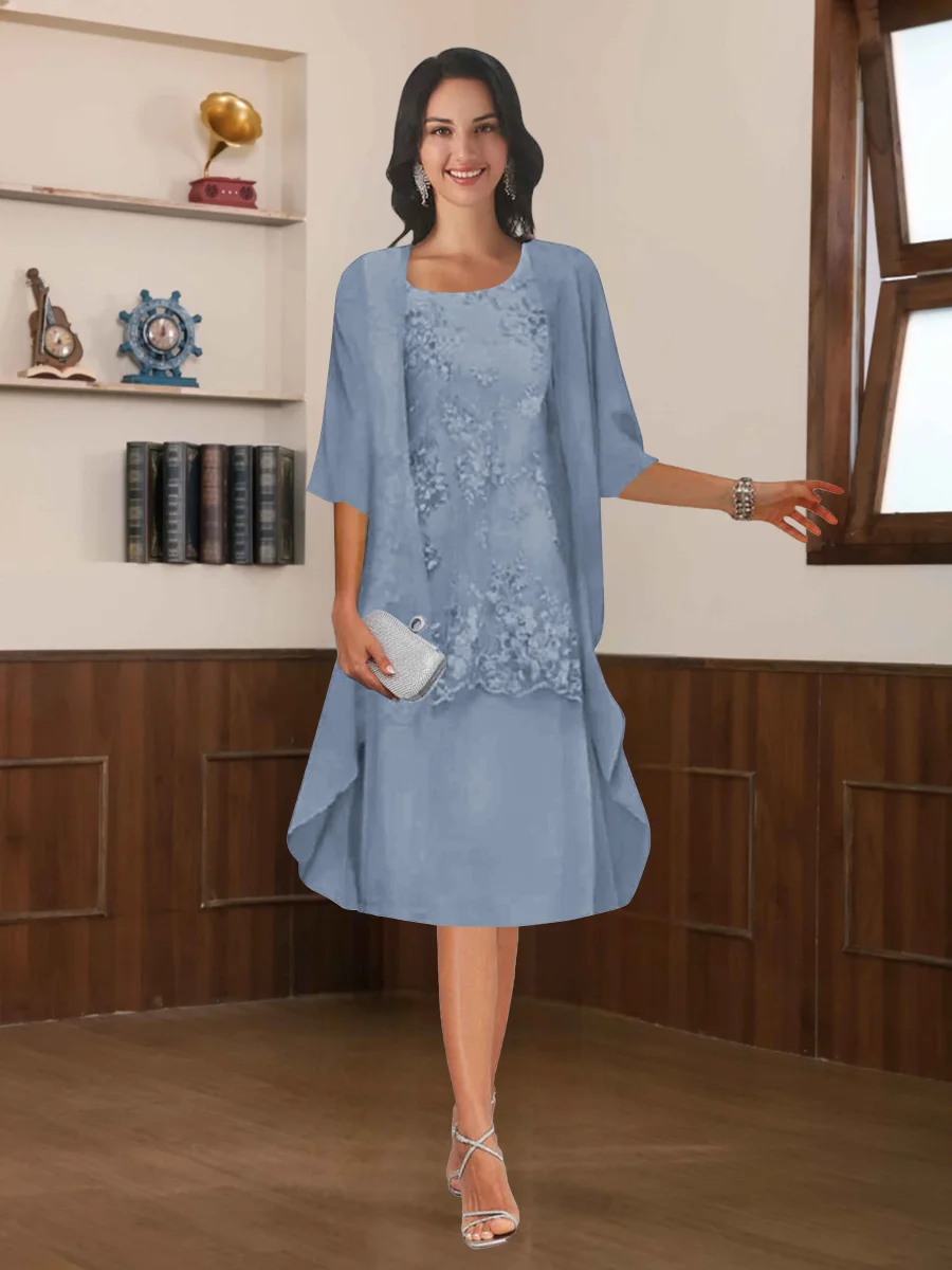 Robes Mère De La Mariée En Mousseline À Moderne Deux pièces Col Rond Longueur Aux Genoux Rhosyn