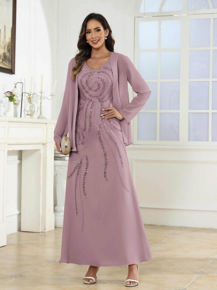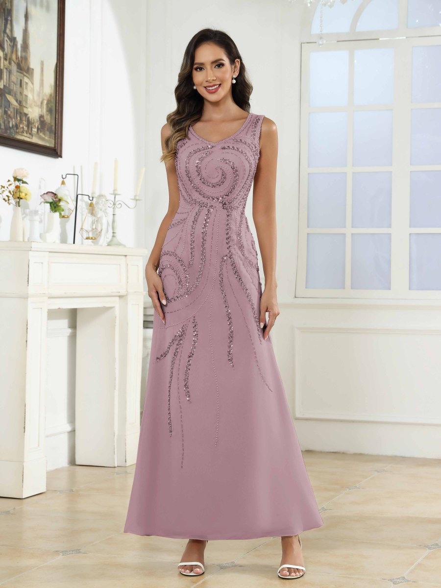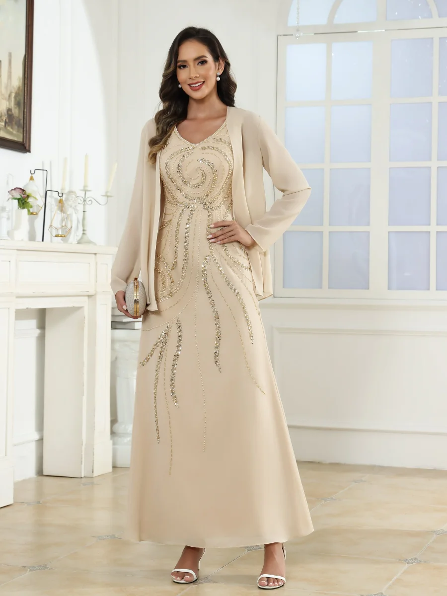 Robes Mère De La Mariée En Mousseline À Pailleté Longueur Cheville Livia