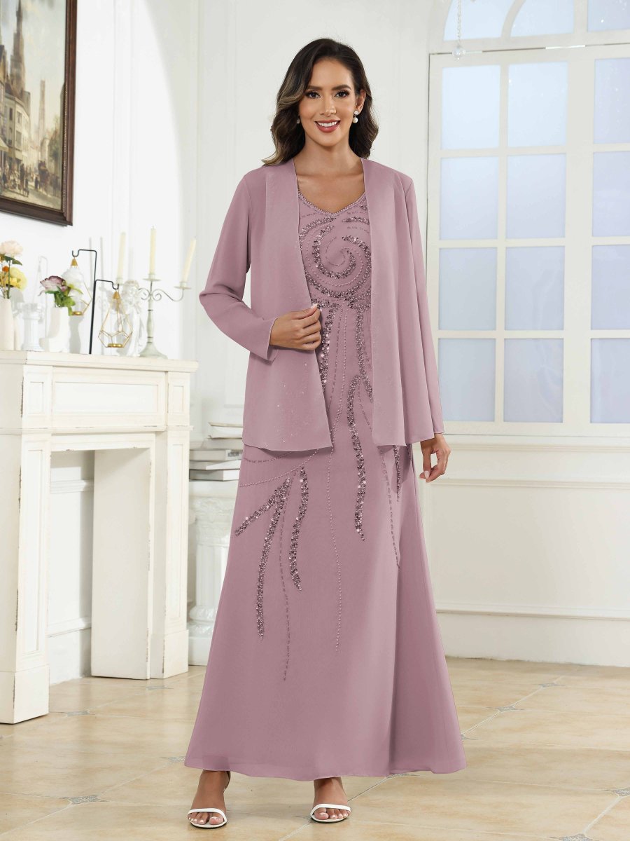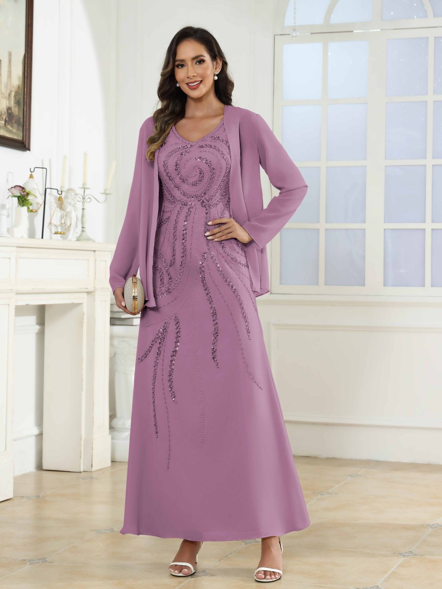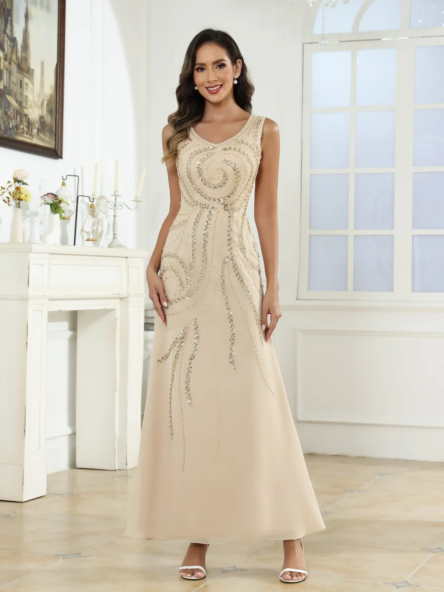 Robes Mère De La Mariée En Mousseline À Pailleté Longueur Cheville Livia
