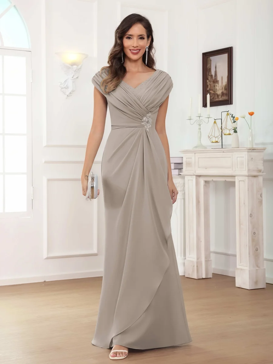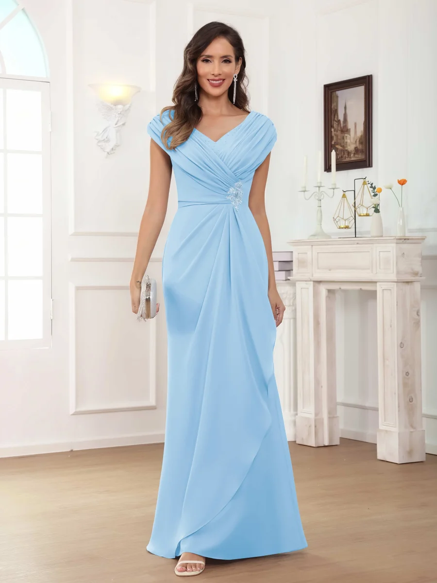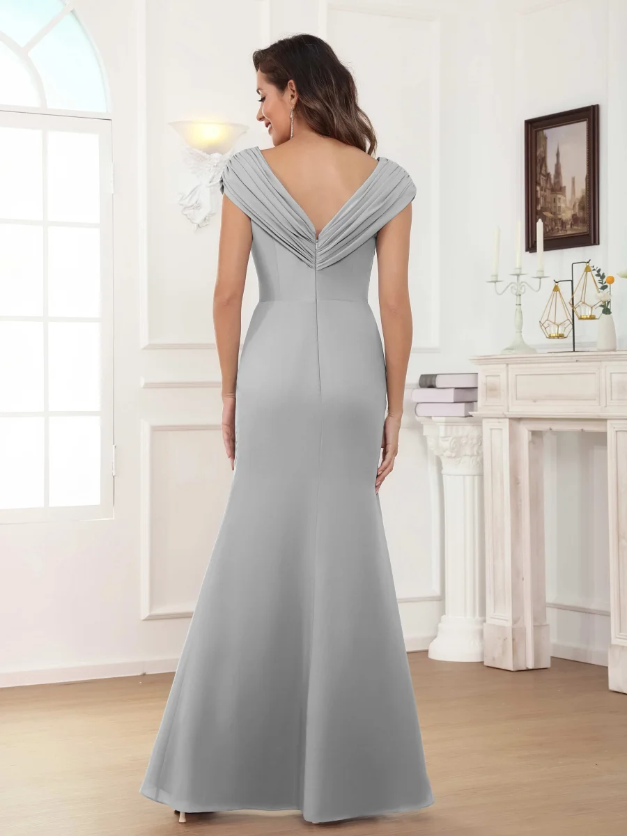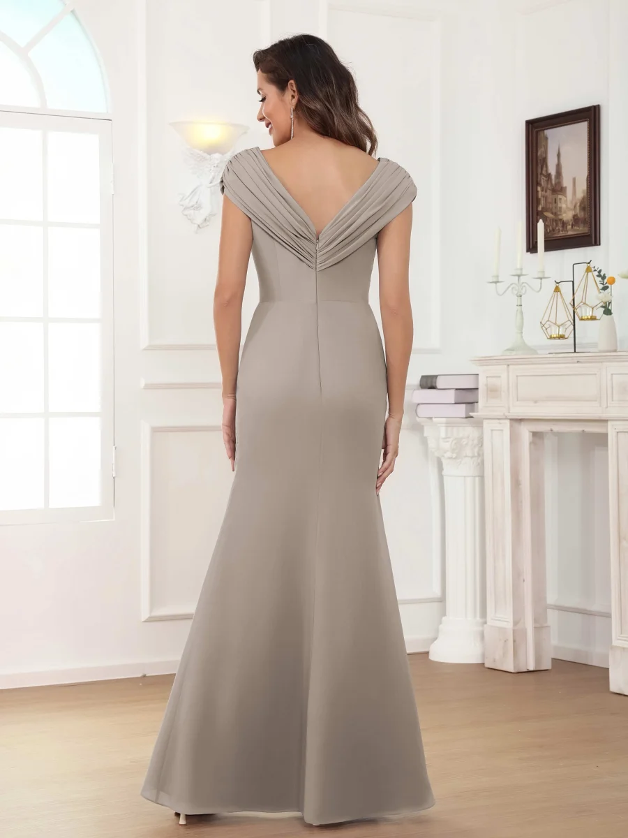 Mère De Mariée En Mousseline À Intellectuelle Trompette Col V Longueur Au Sol Aeliana
