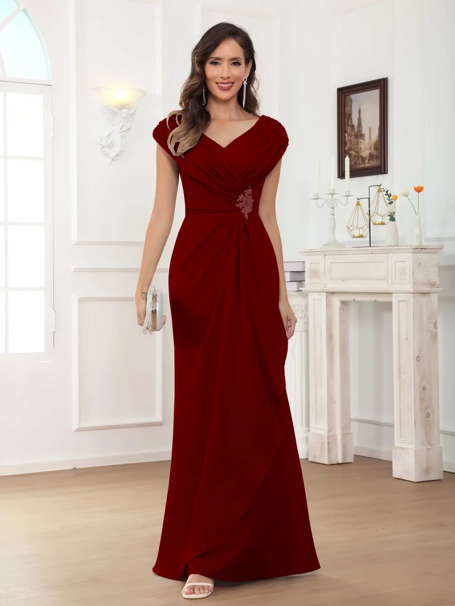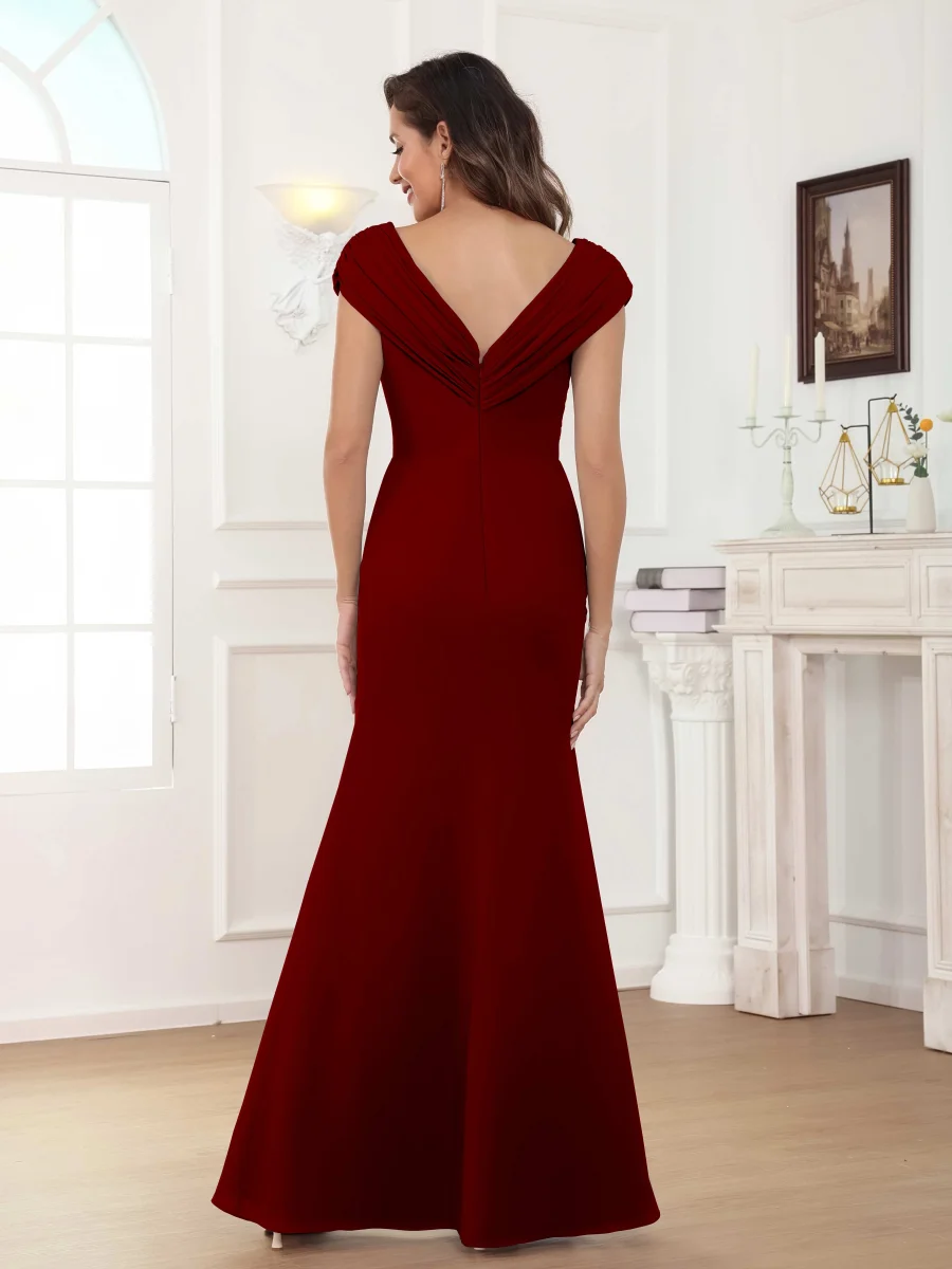 Mère De Mariée En Velours À Royale Gaine Col V Manches Longues Longueur Au Sol Elsinore