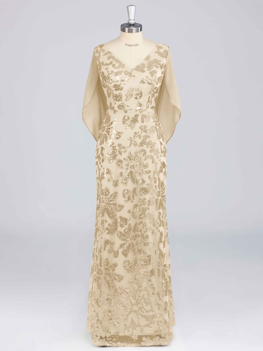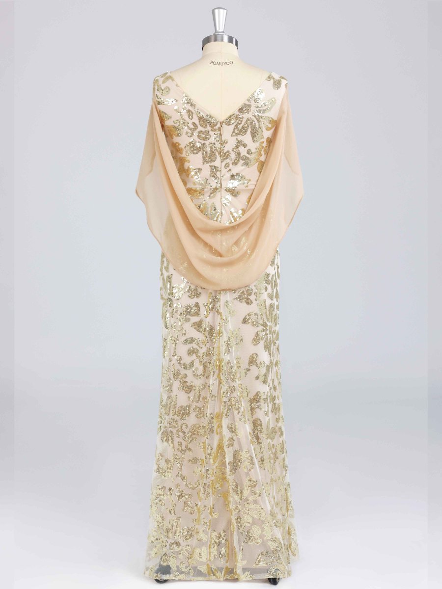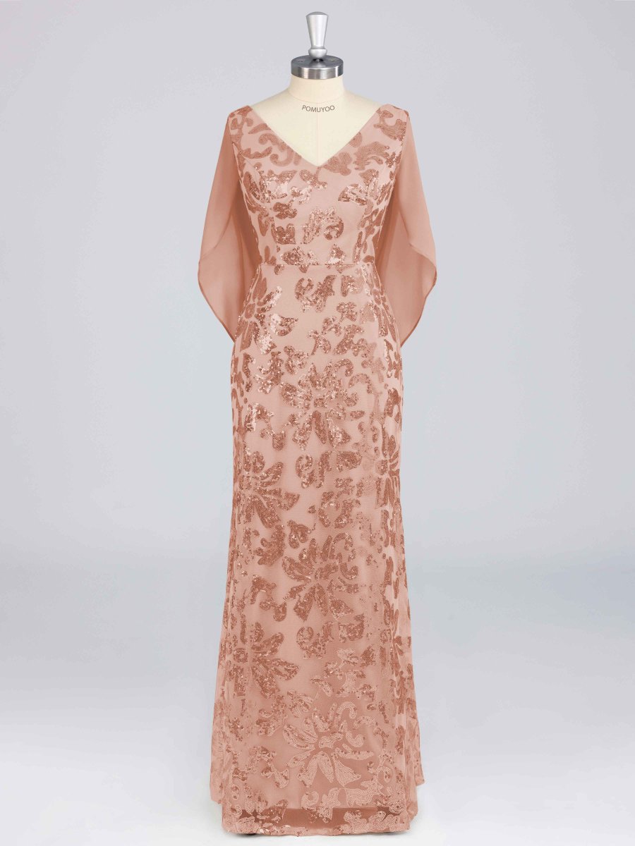 Robes Mère De La Mariée En Pailleté À Pailleté Longue Avec Cape