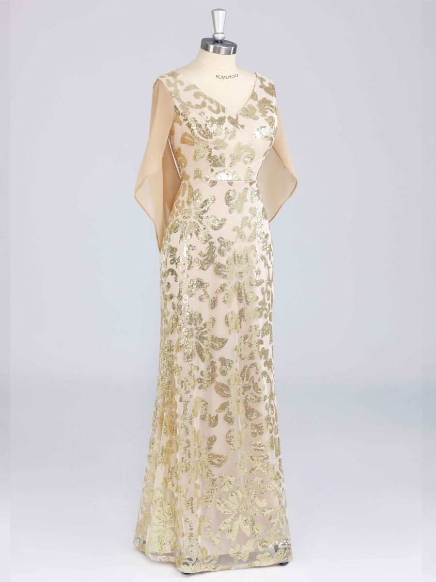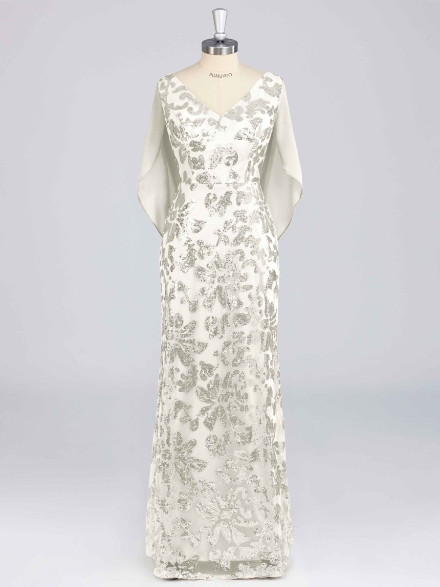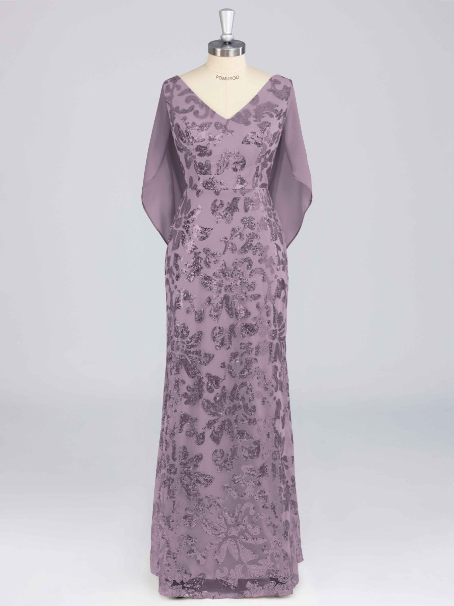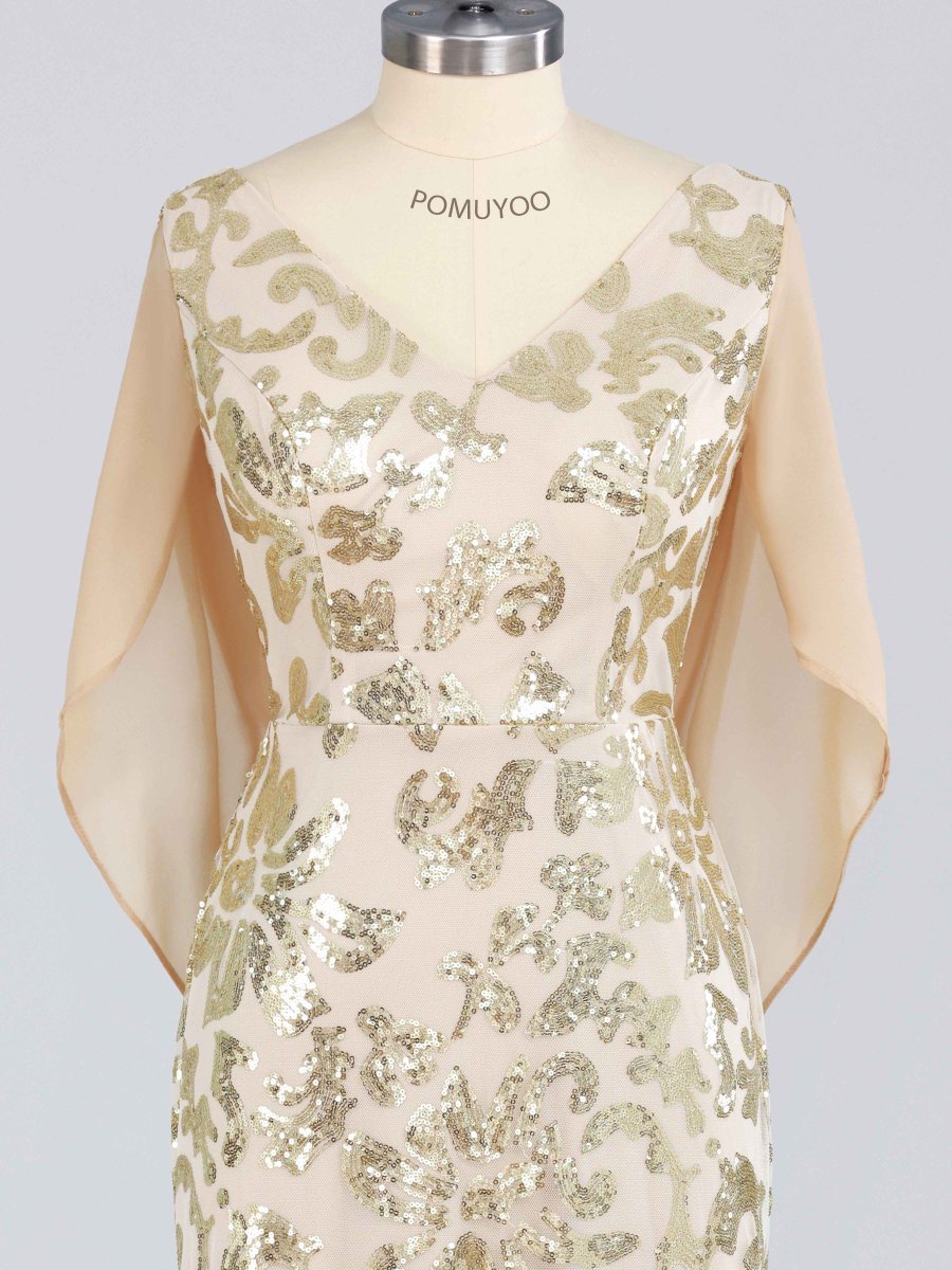 Robes Mère De La Mariée En Pailleté À Pailleté Longue Avec Cape
