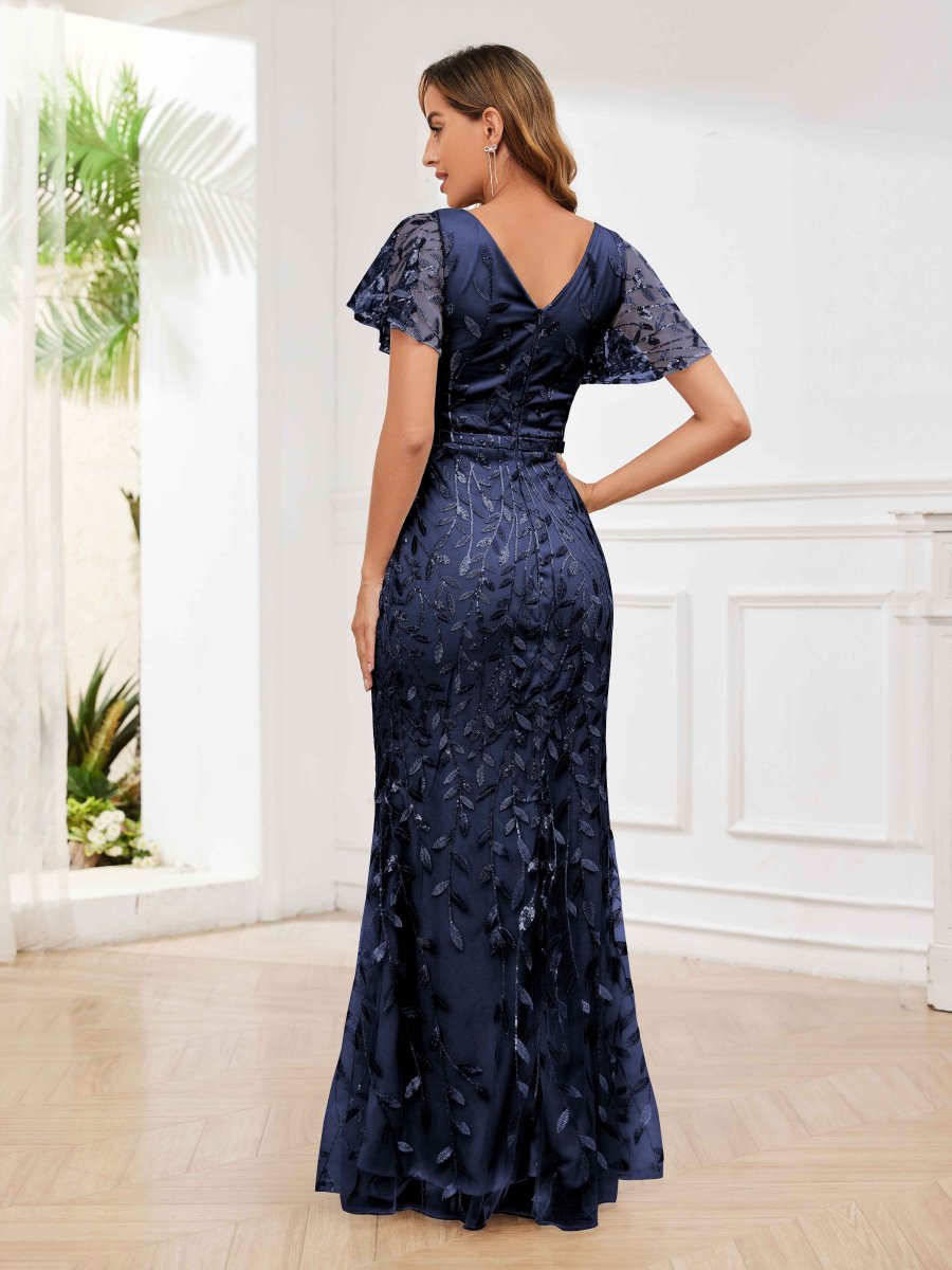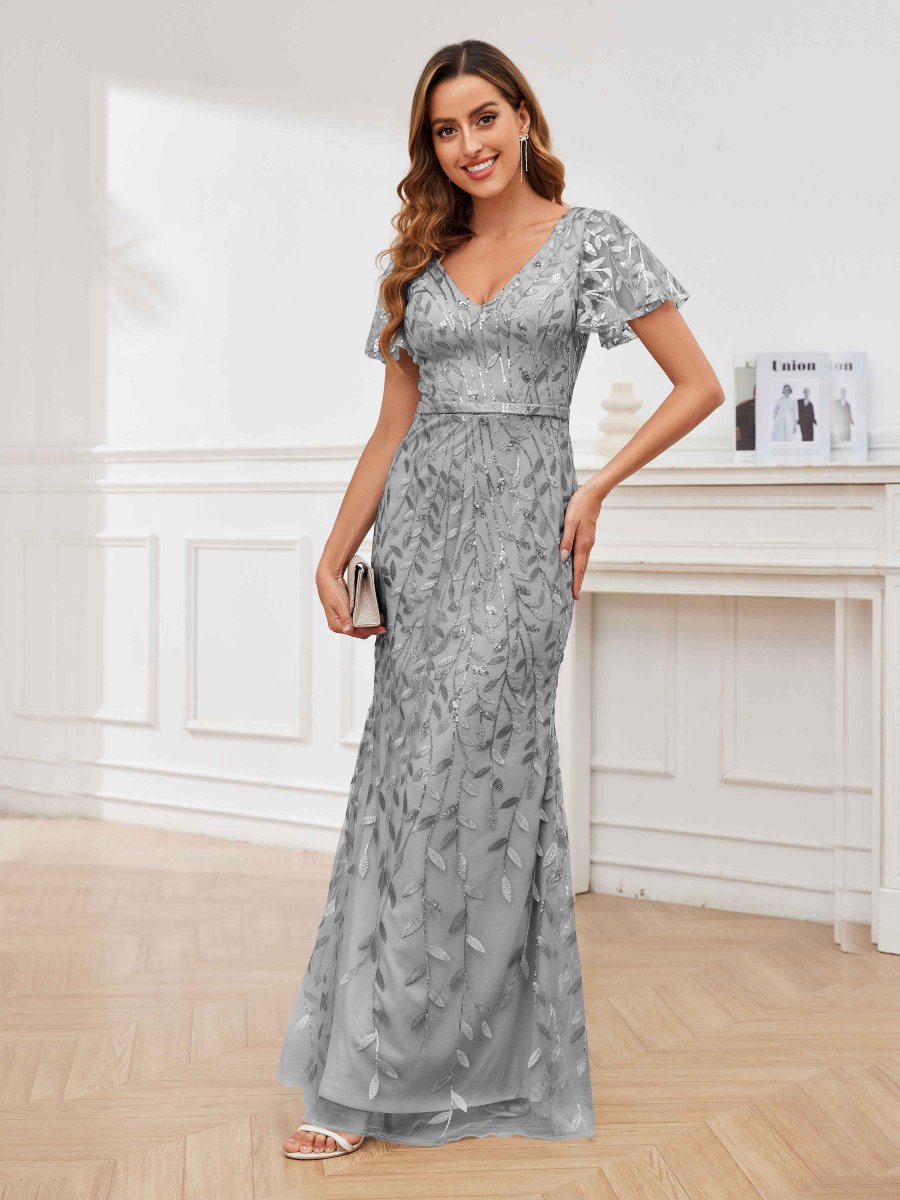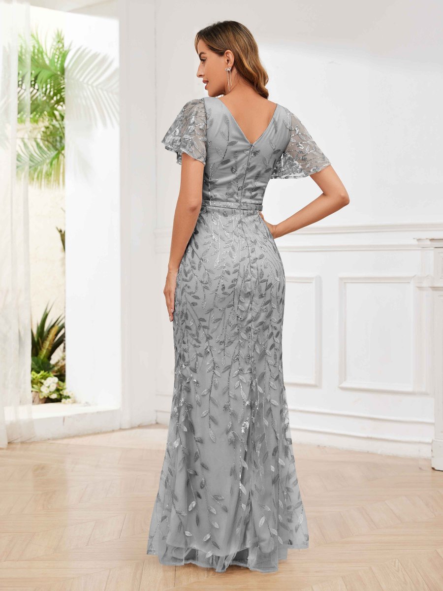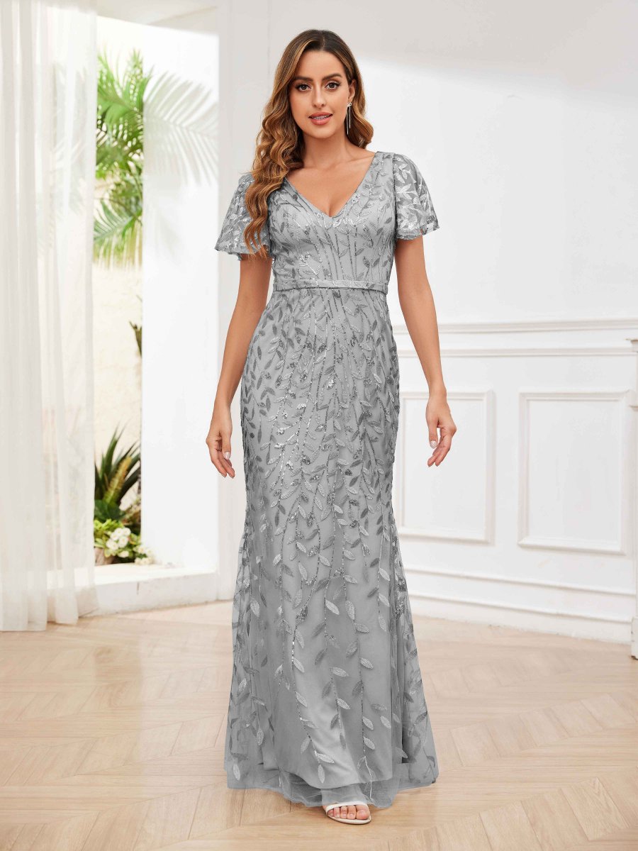 Robes Mère De La Mariée En Pailleté Tulle À Fermeture Éclair Col V Fernanda