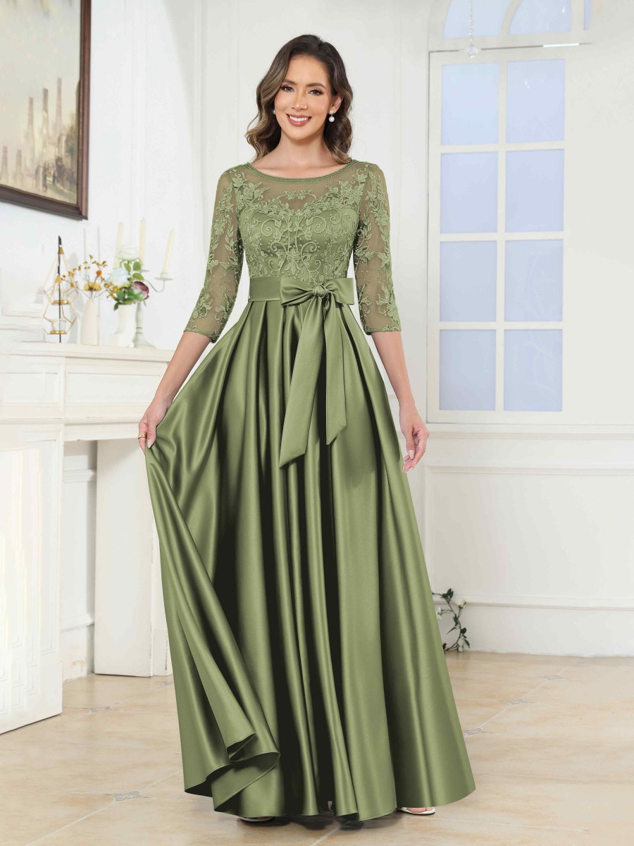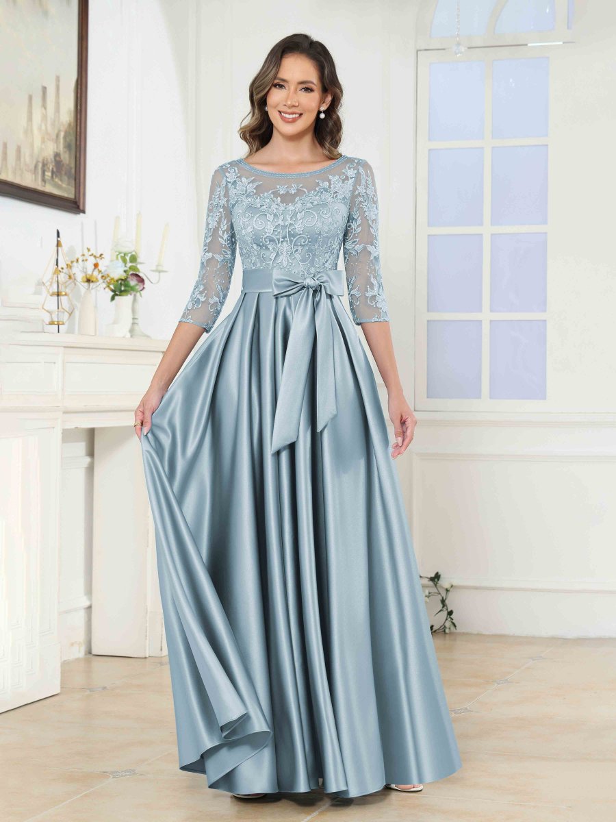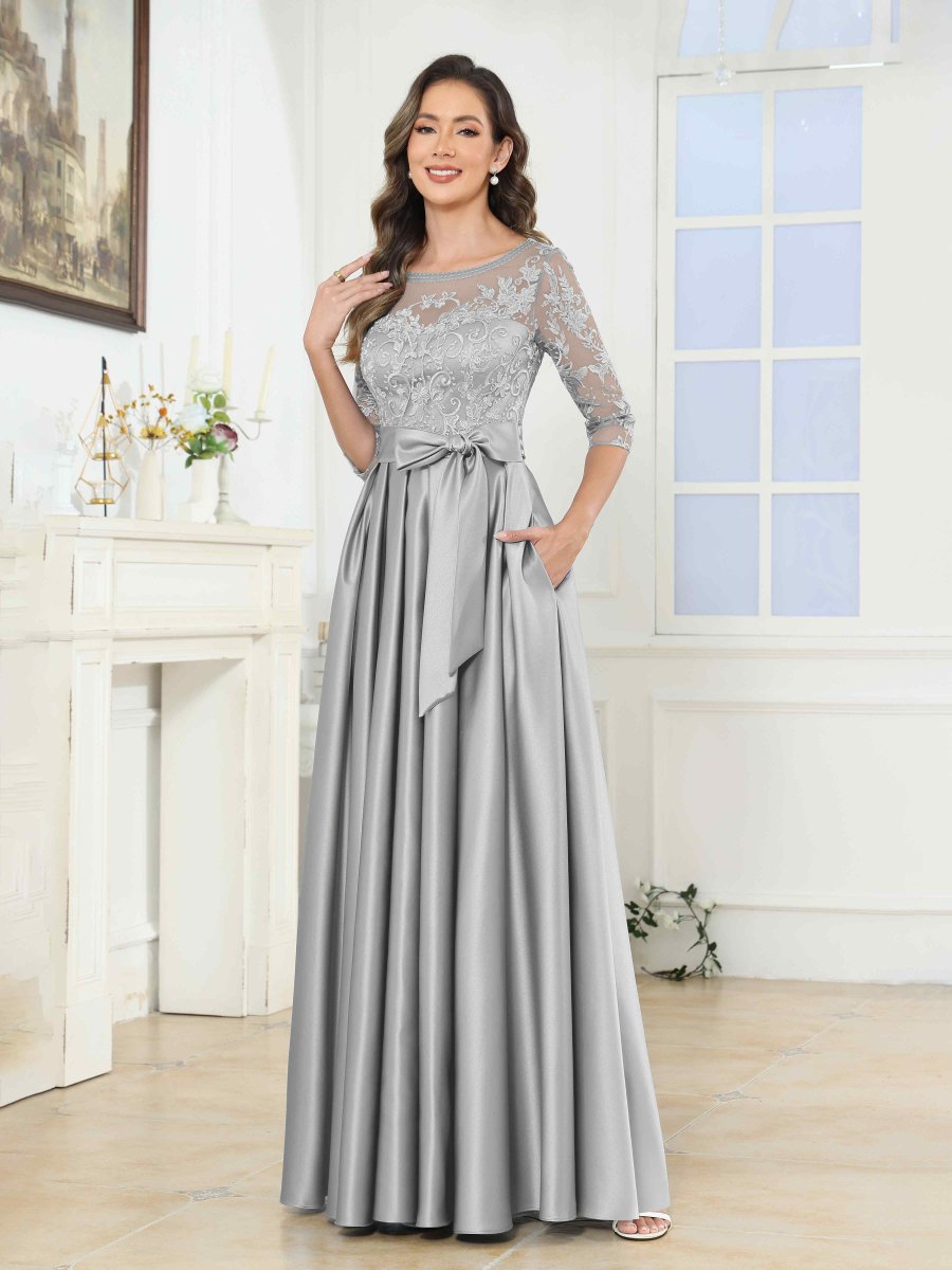 Robes Mère De La Mariée En Satin À Appliqués Illusion Noeud Papillon Jenesis