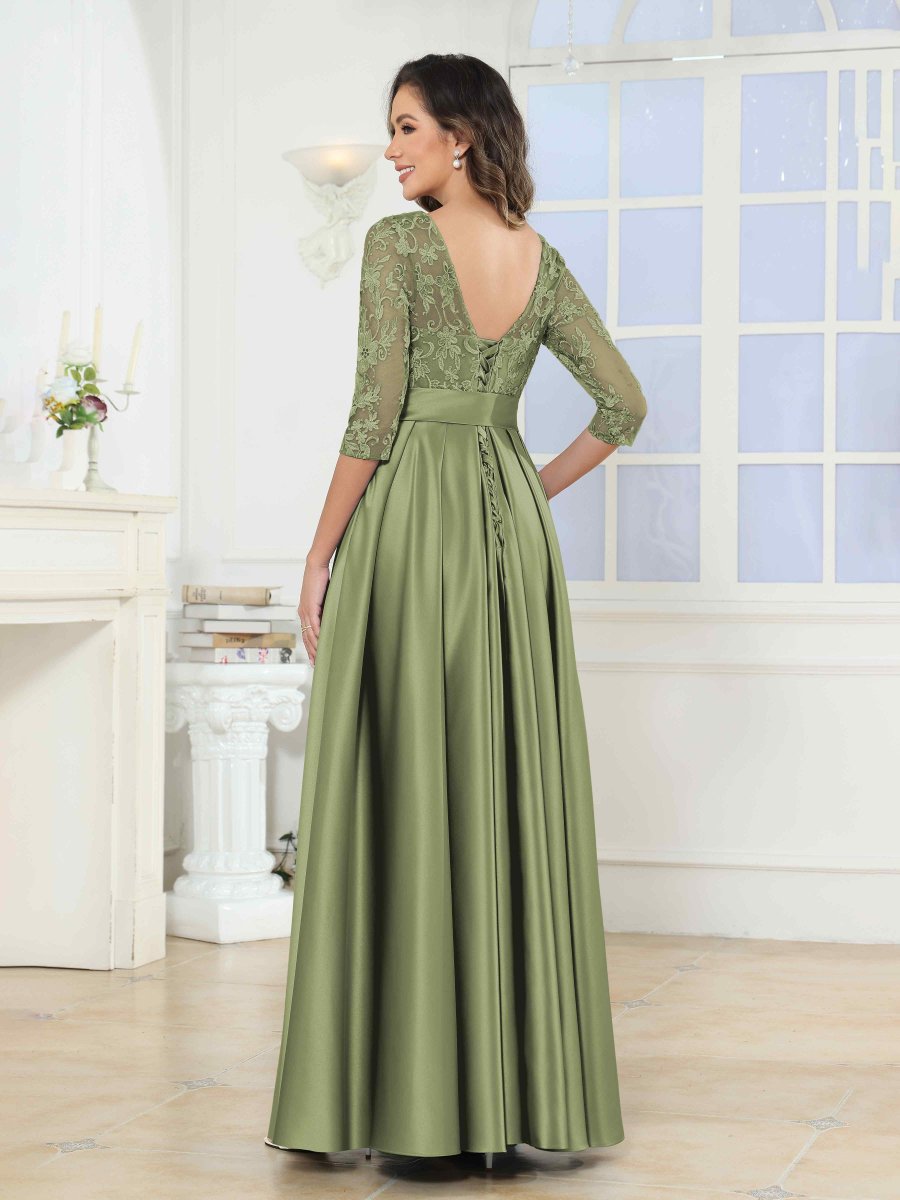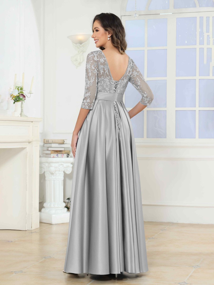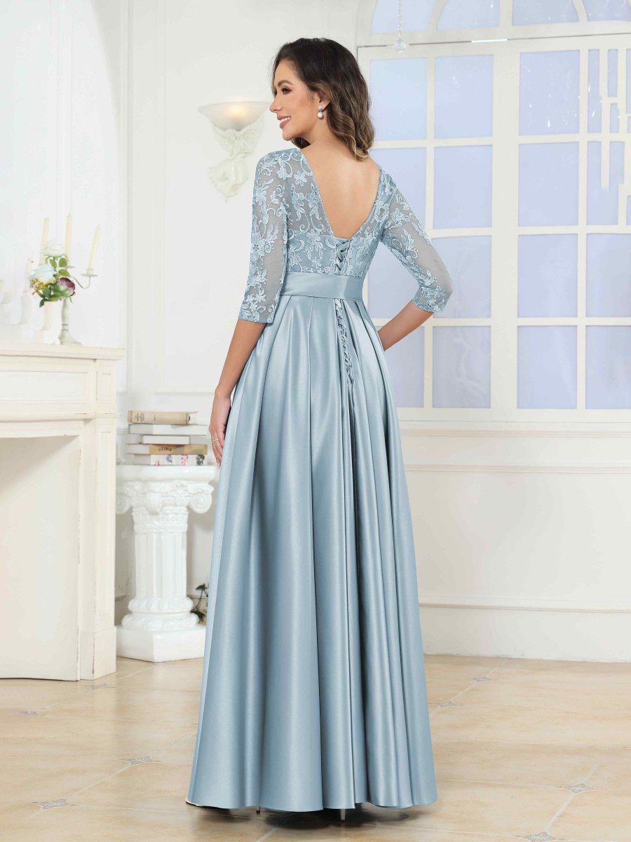 Robes Mère De La Mariée En Satin À Appliqués Illusion Noeud Papillon Jenesis