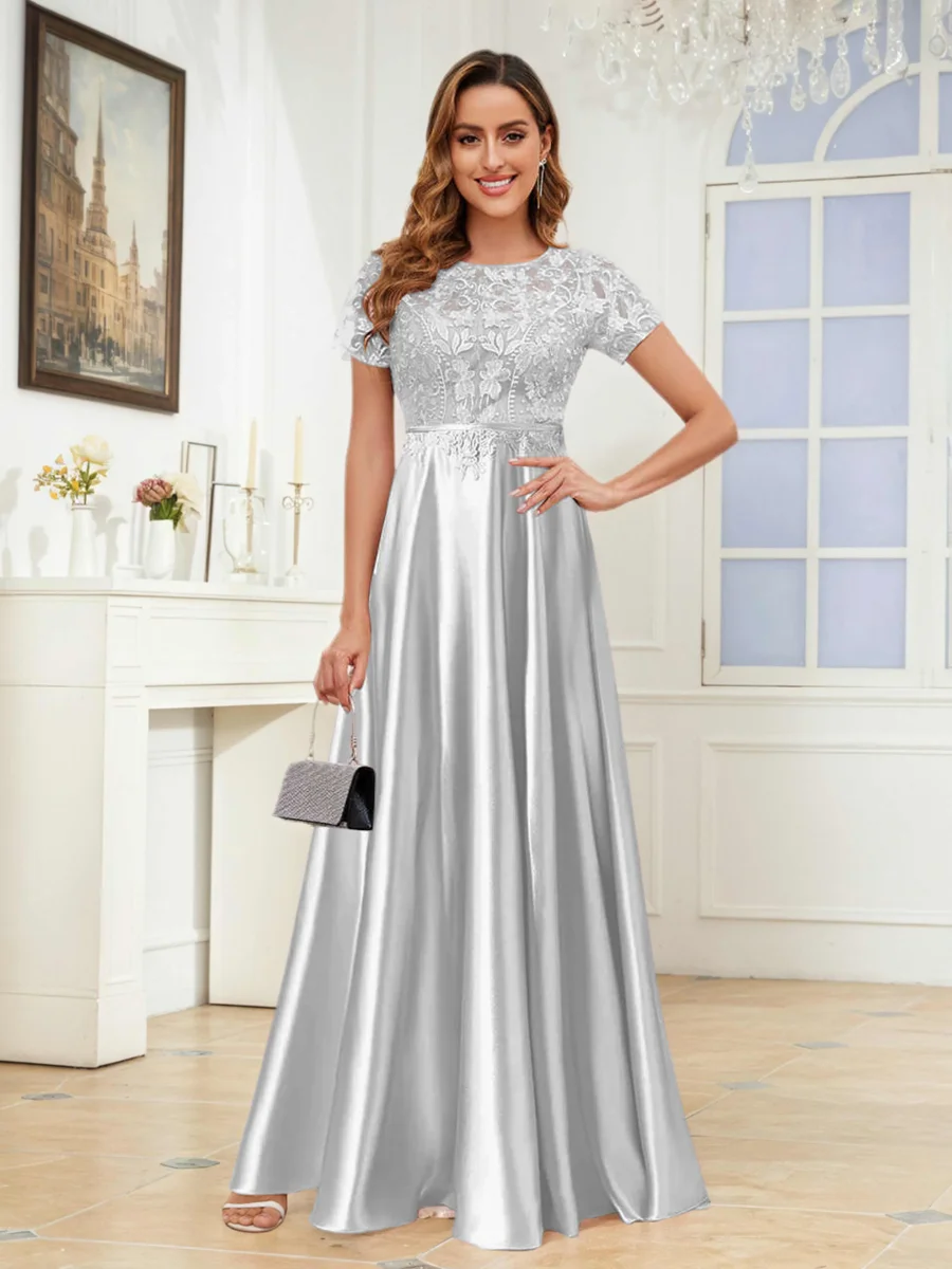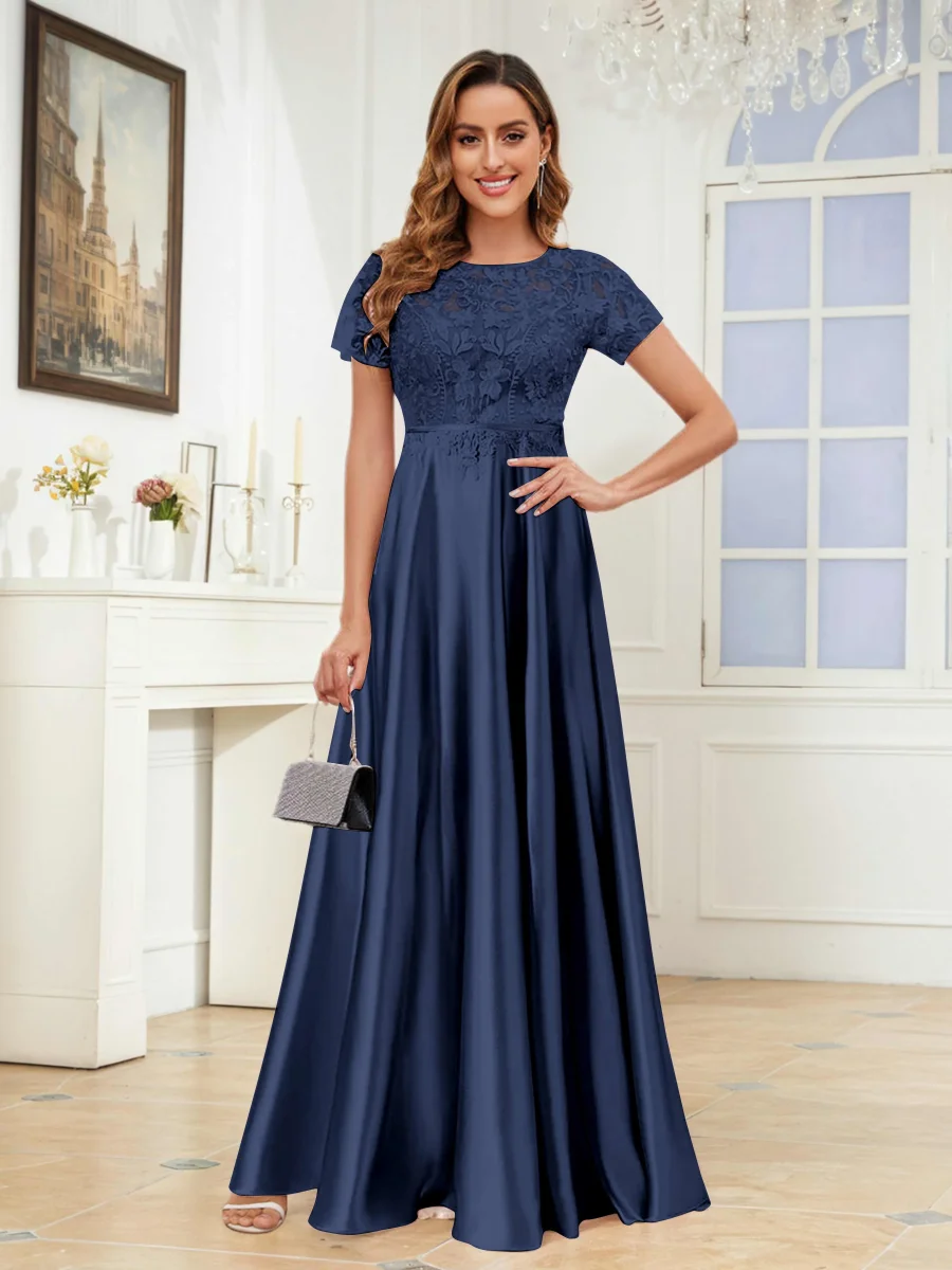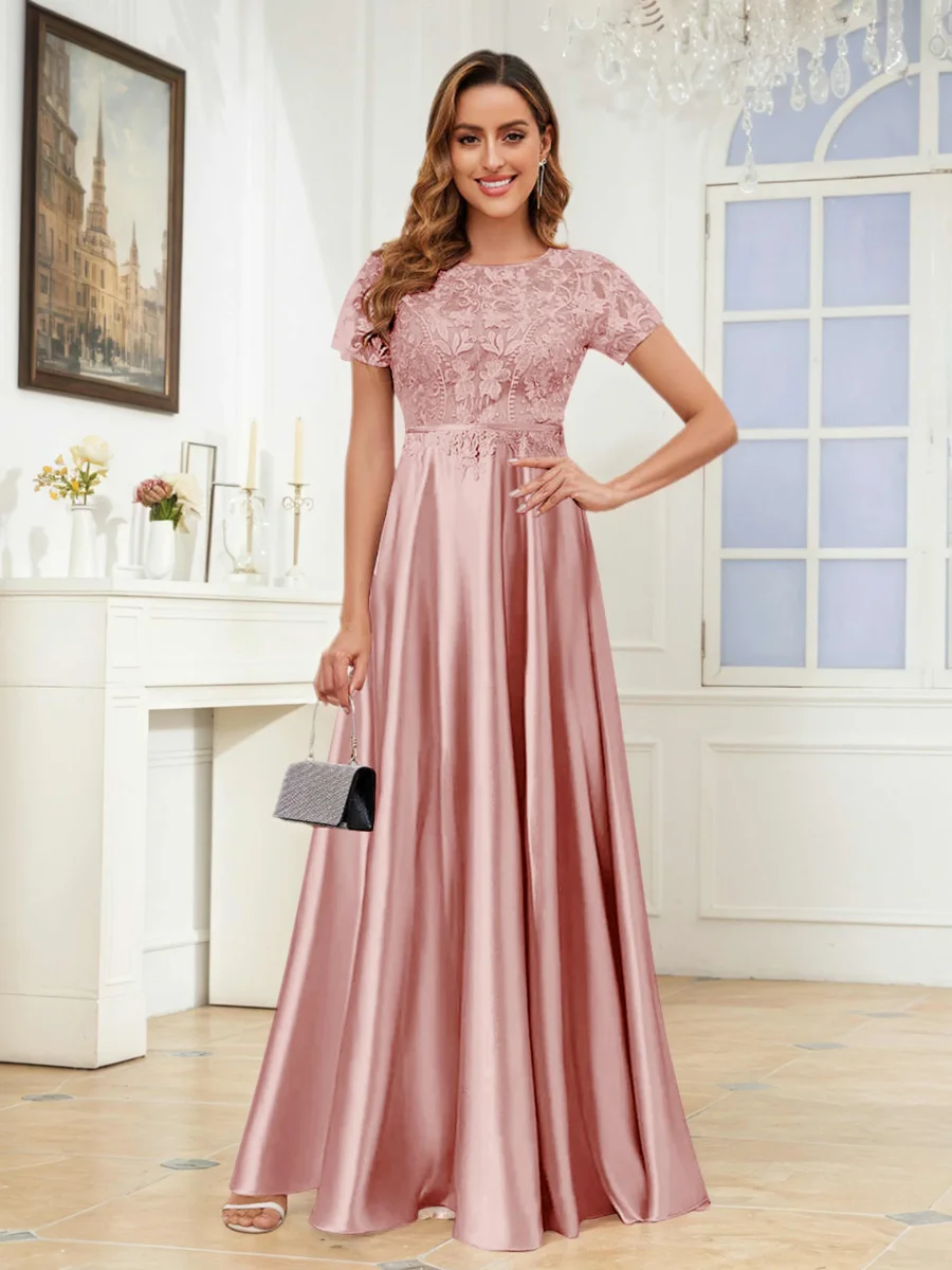 Robes Mère De La Mariée En Satin À Col Rond Dentelle Ruché Jazmine
