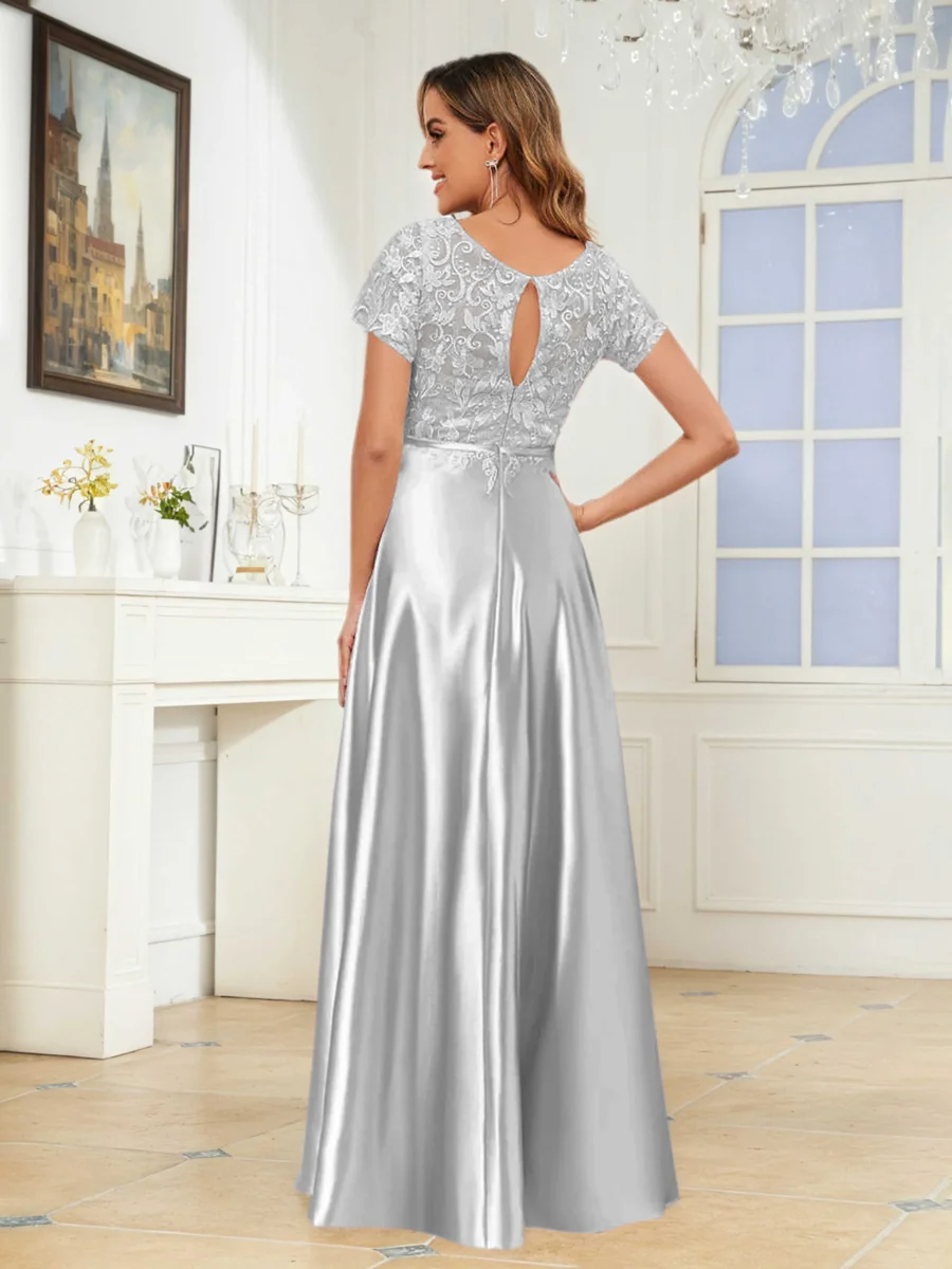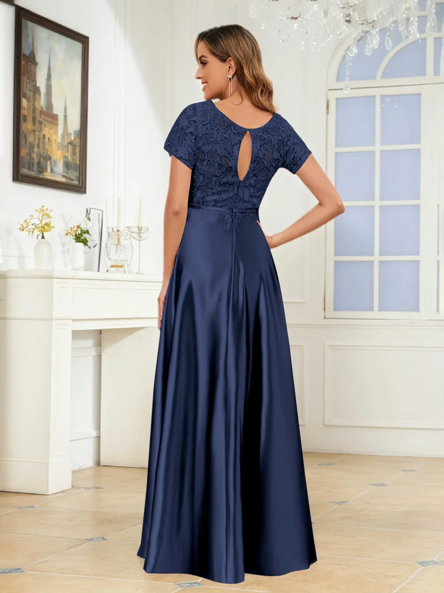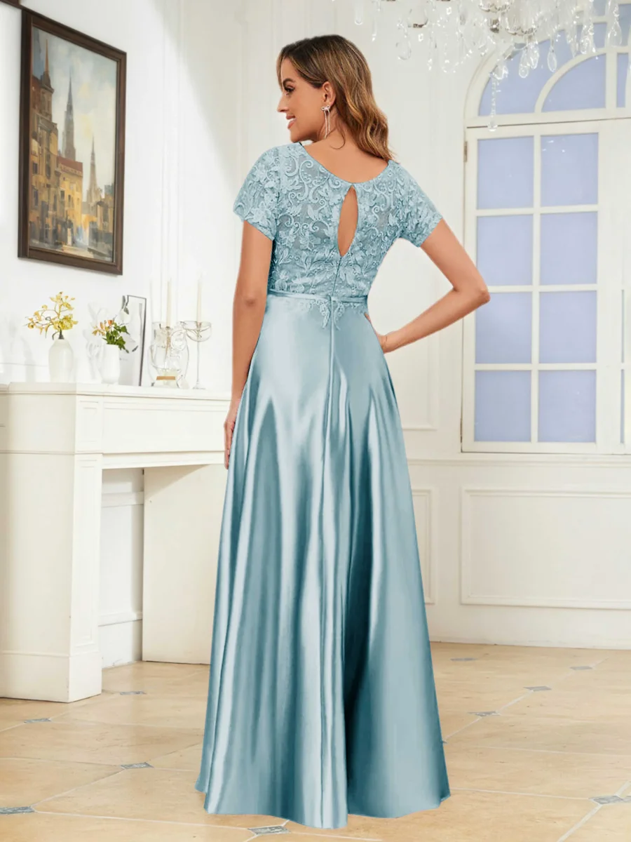 Robes Mère De La Mariée En Satin À Col Rond Dentelle Ruché Jazmine