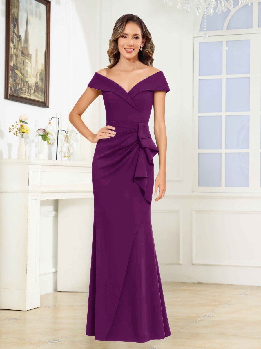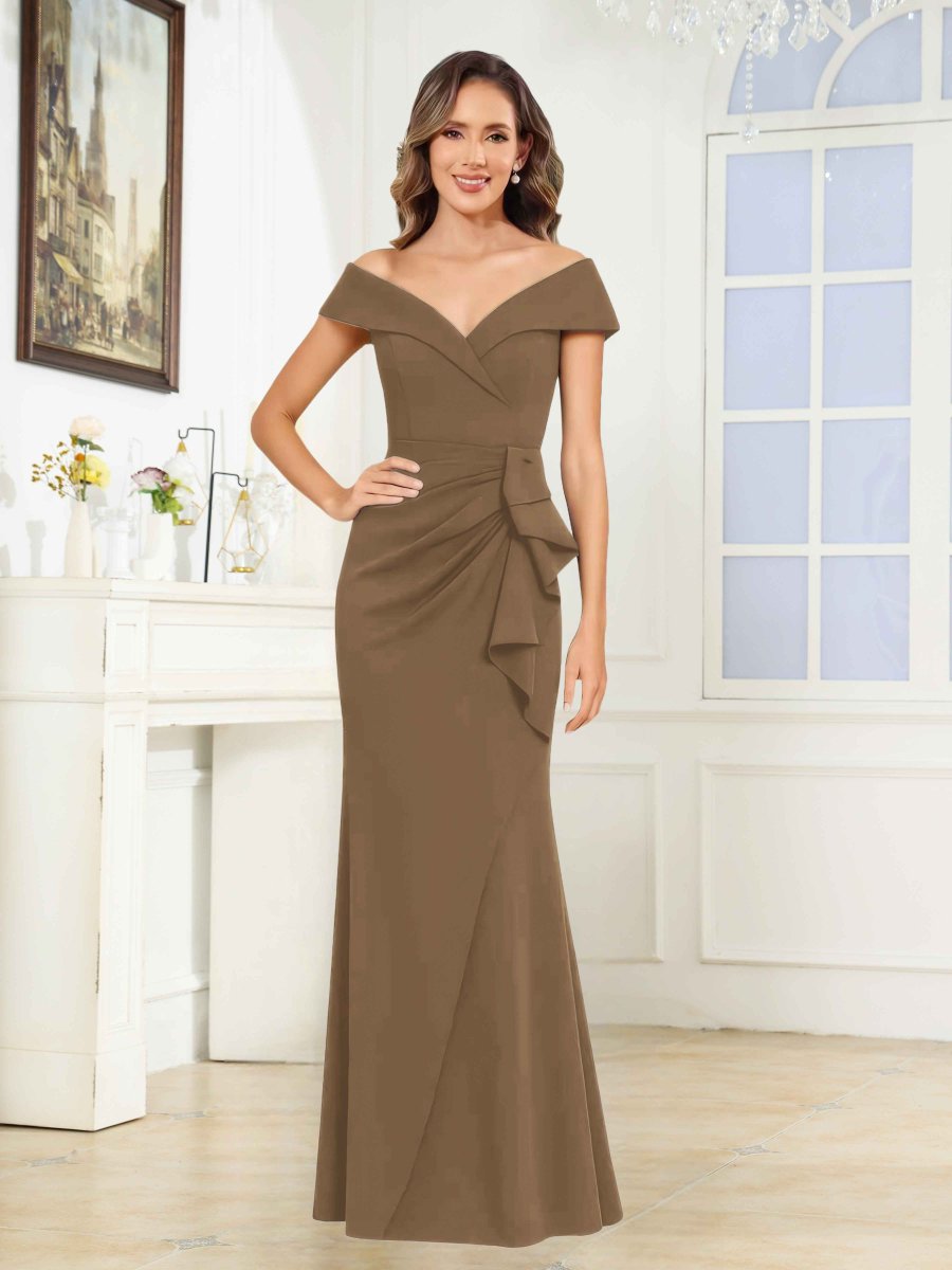 Robes Mère De La Mariée En Satin À Épaules Dénudées Ruché Volants Galilea