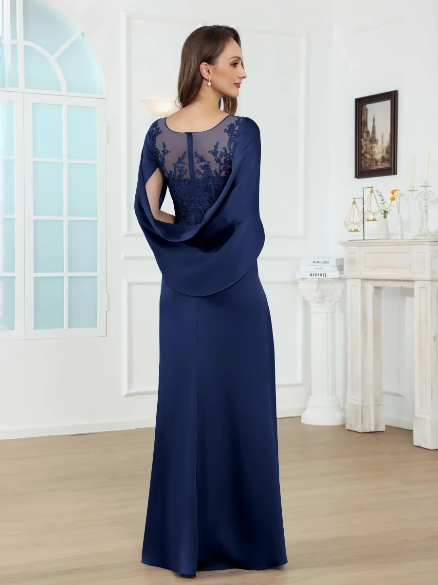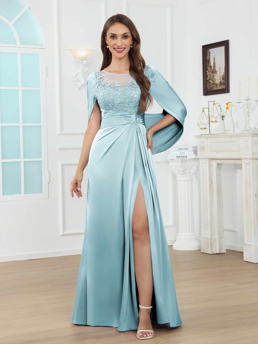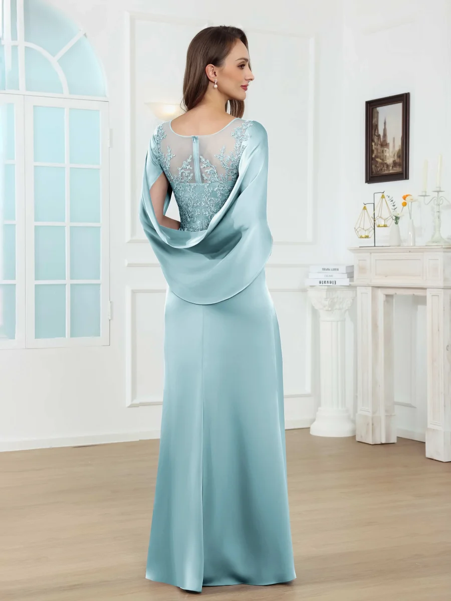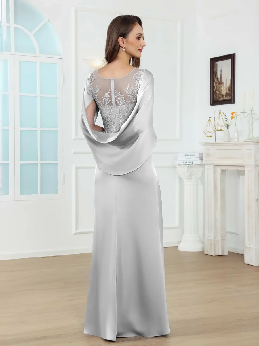 Robes Mère De La Mariée En Satin À Illusion Appliqués Ismay