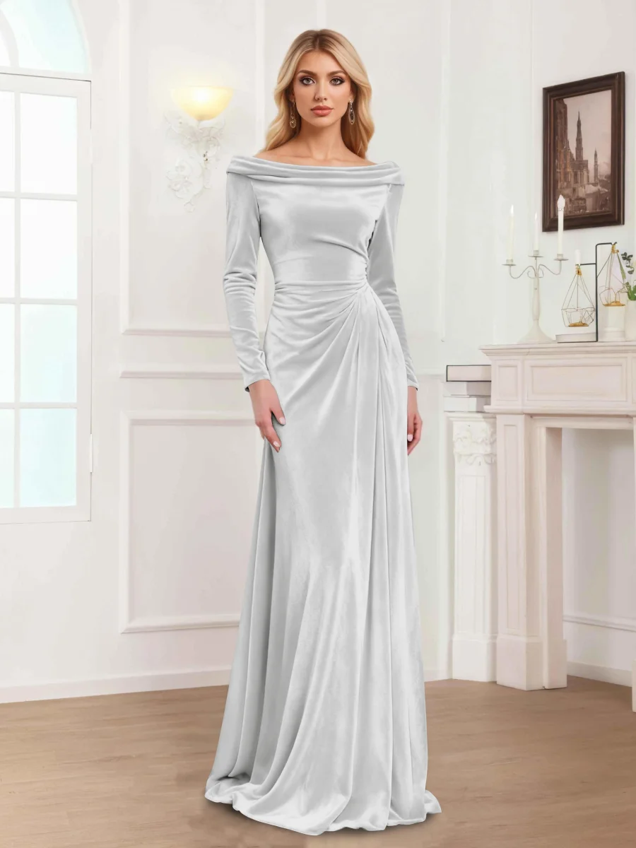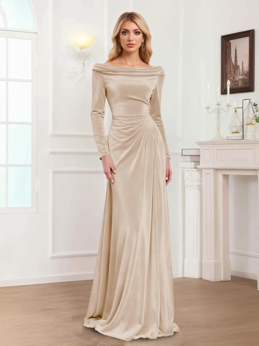 Robes Mère De La Mariée En Velours À Manches Longues Ruché Zanna