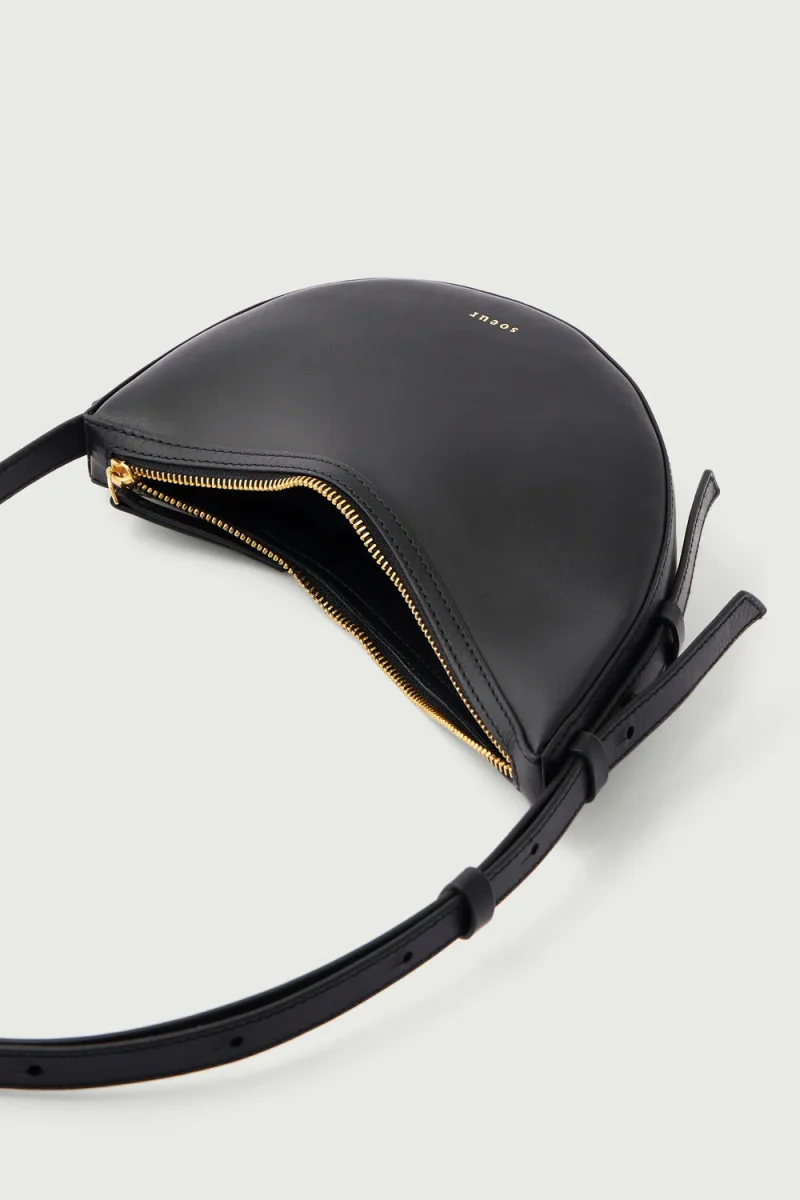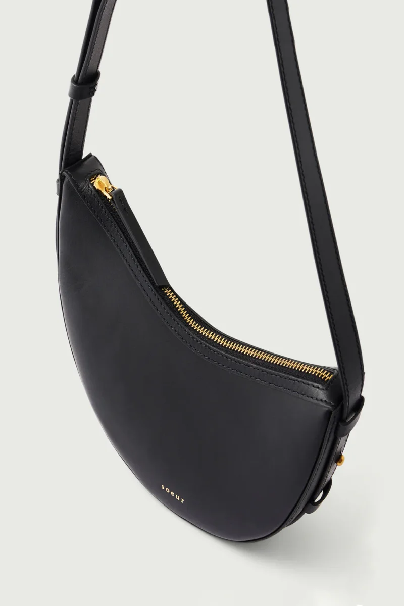 – Mini sac en cuir lisse noir porté épaule ou en bandoulière