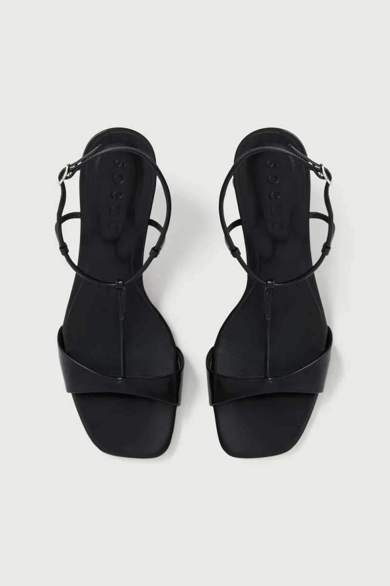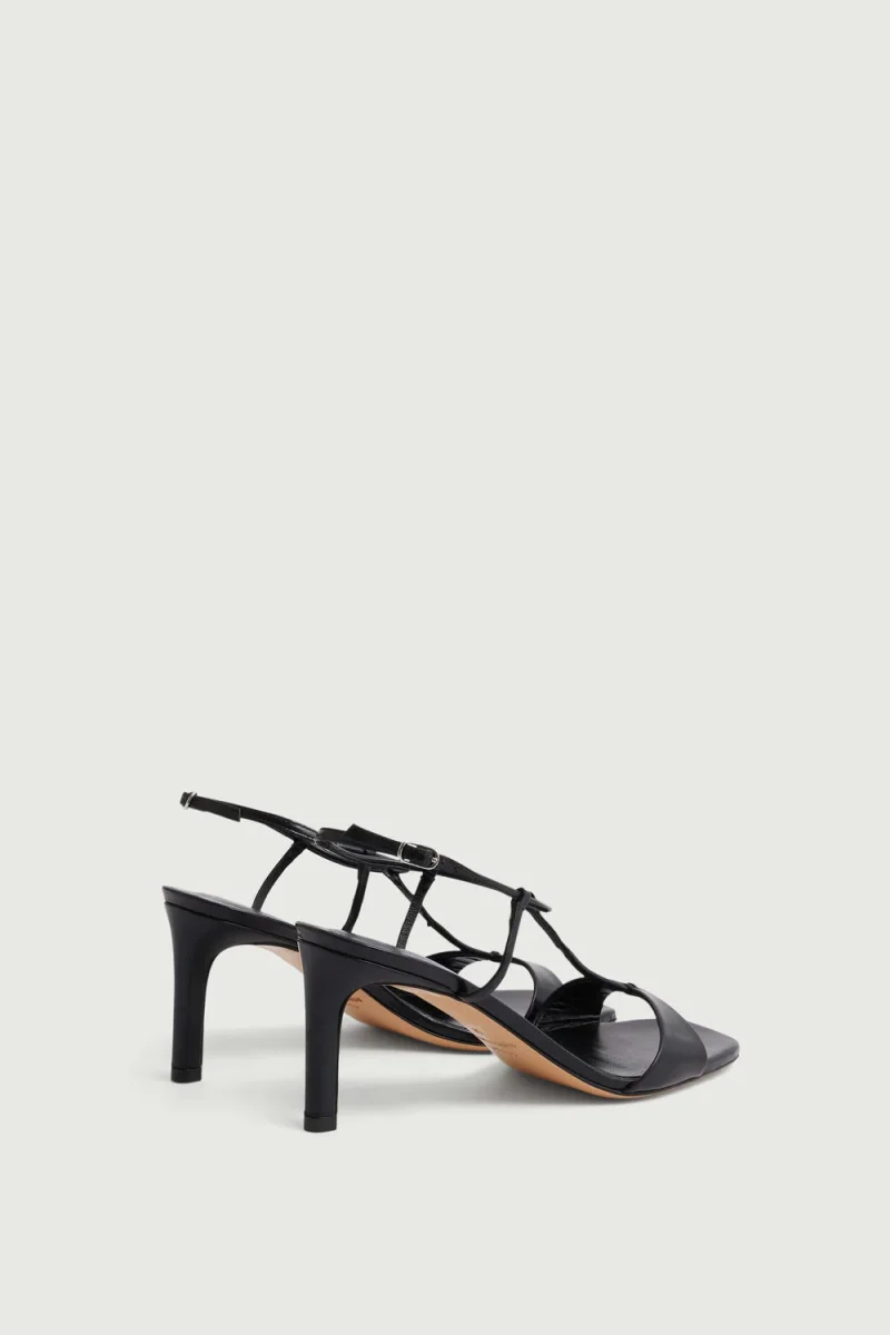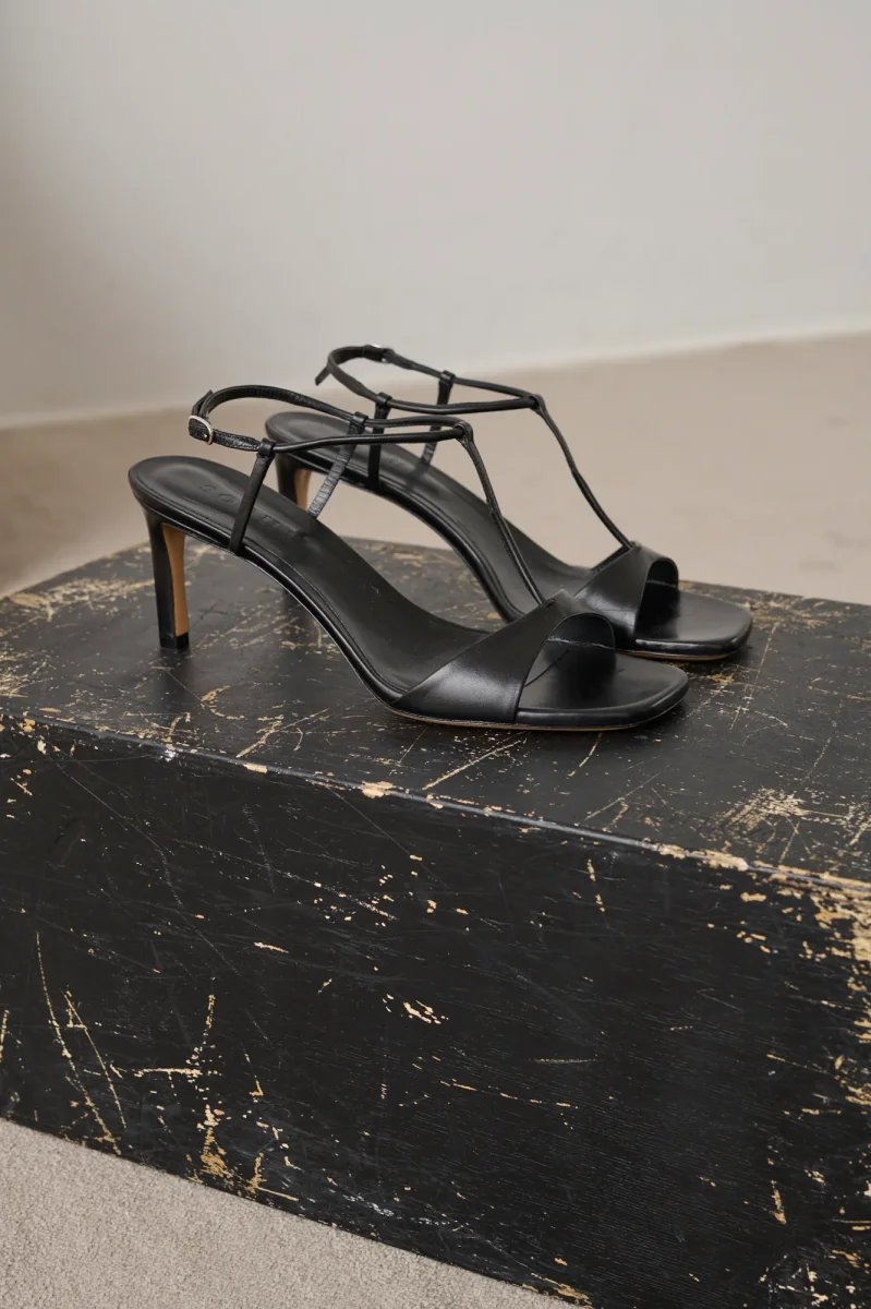 – Sandales à talon en cuir lisse noir