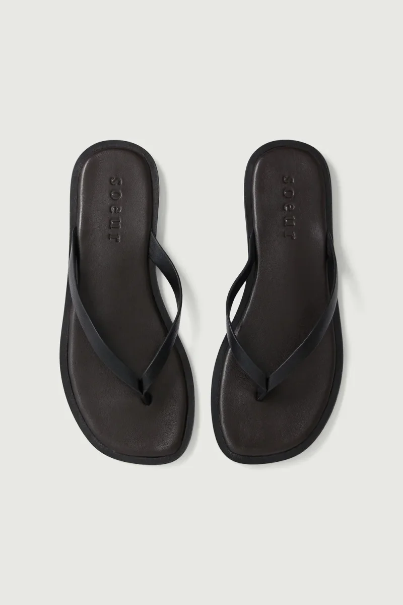 – Sandales ouvertes en cuir noir – Cuir LWG (Leather Working Group)
