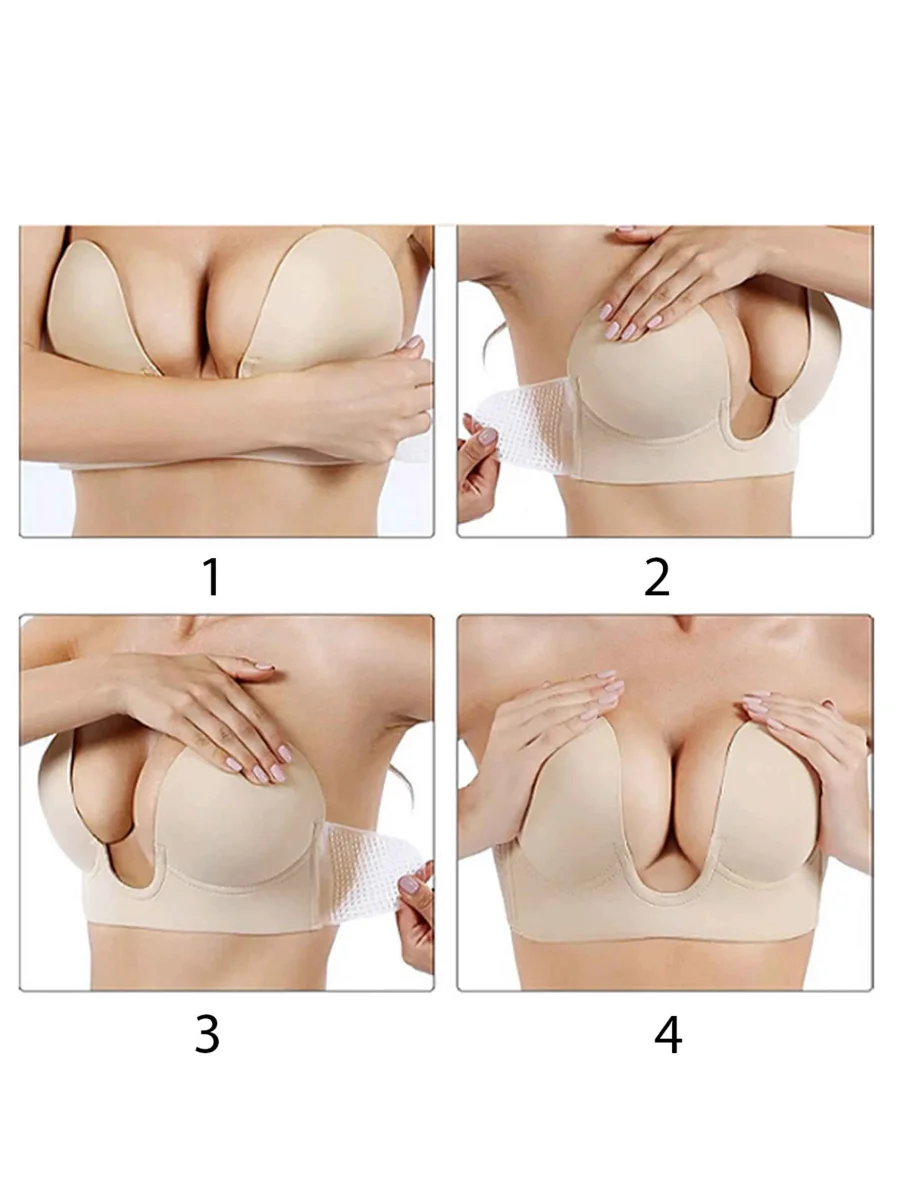 Soutien-Gorge Invisible Adhésif Réutilisable Sans Dos Profond En U Mariage/Femme