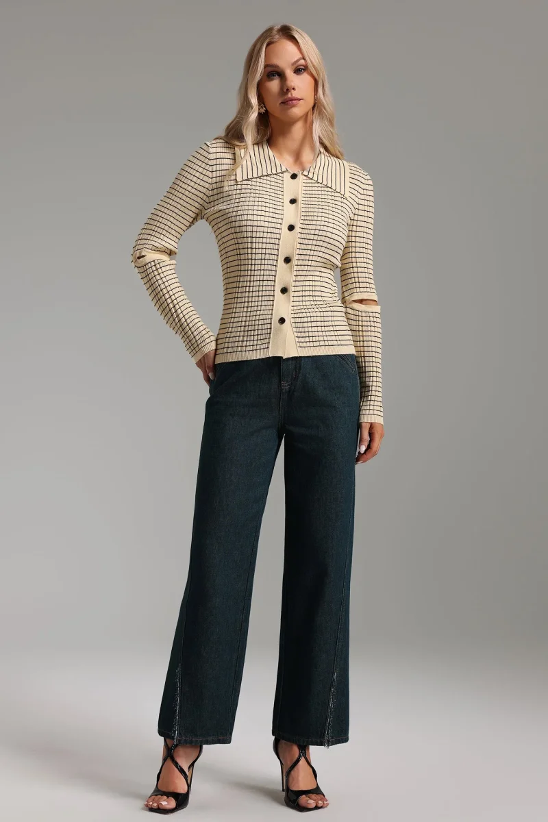 Striped cardigan with cut-out sleeves | Ligne Contemporaine