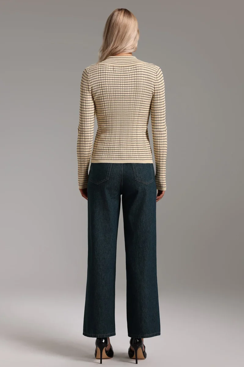 A piece that revisits classic codes with a modern twist.This structured cardigan seduces with its worked collar, fine stripes and bold cut-outs on the sleeves.Perfect for an elegant, up-to-date silhouette, from the office to a night out with friends. Details :– Button front closure– Structured shirt collar– Regular stripes– Long sleeves with designer cut-outs– Length: […]
