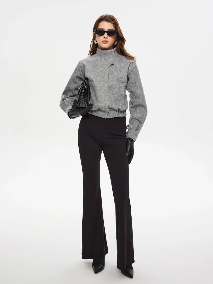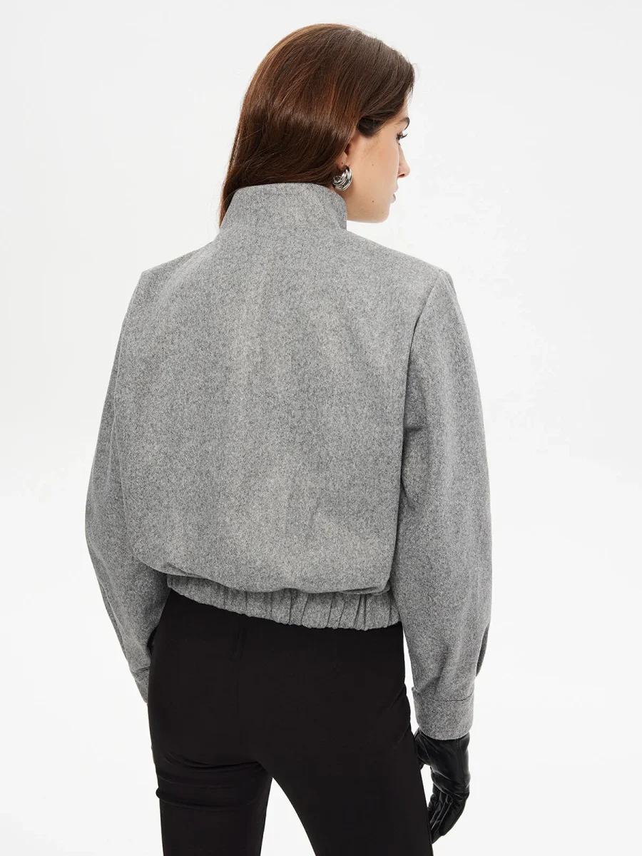 Structured Grey Jacket | High Collar | Minimalist Elegance