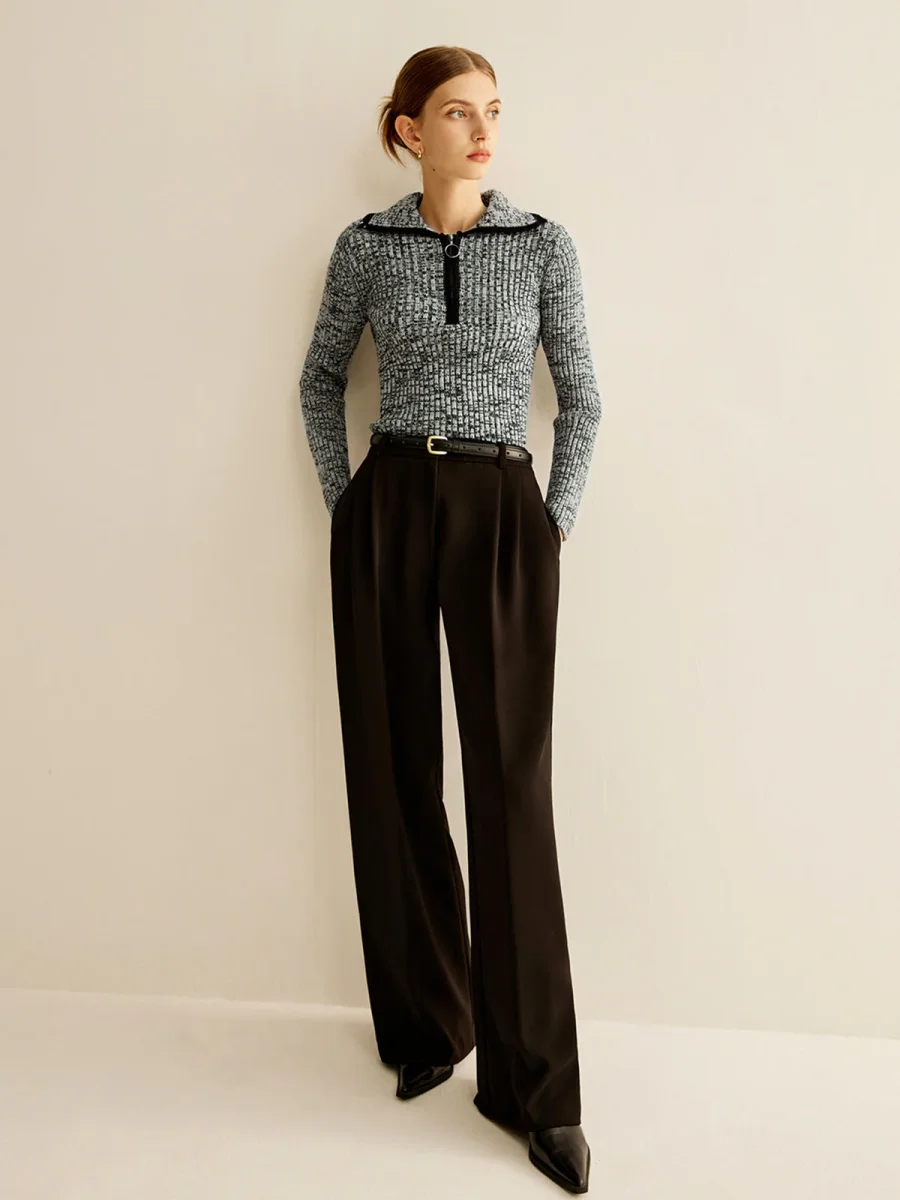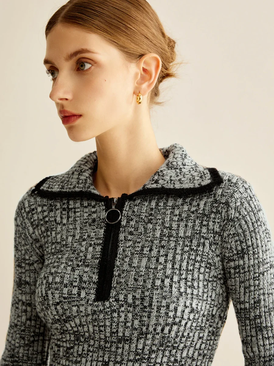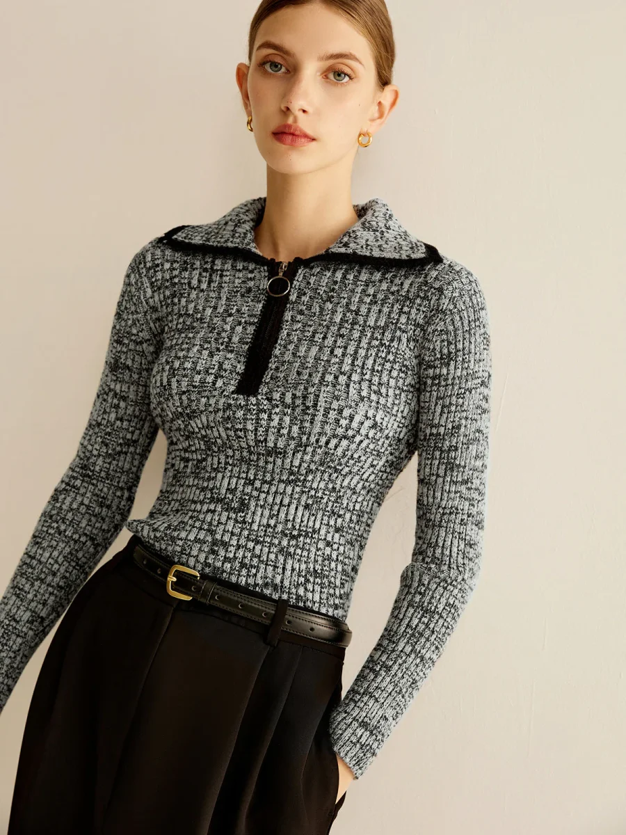 Top Zippé Texturé | Col Polo | Look Structuré Noir & Blanc