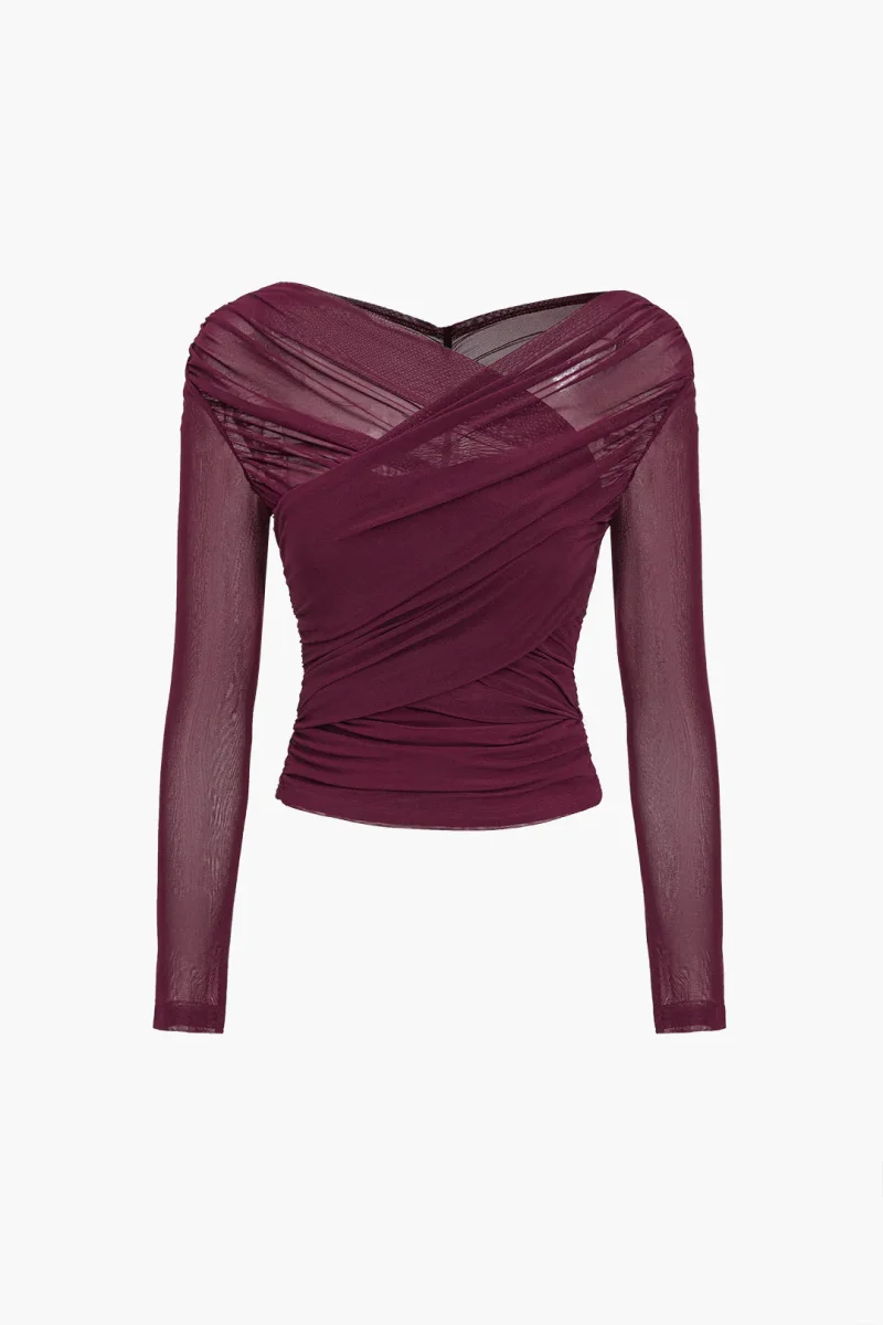 Tulle Double Breasted Top | Draped Elegance and Long Sleeves