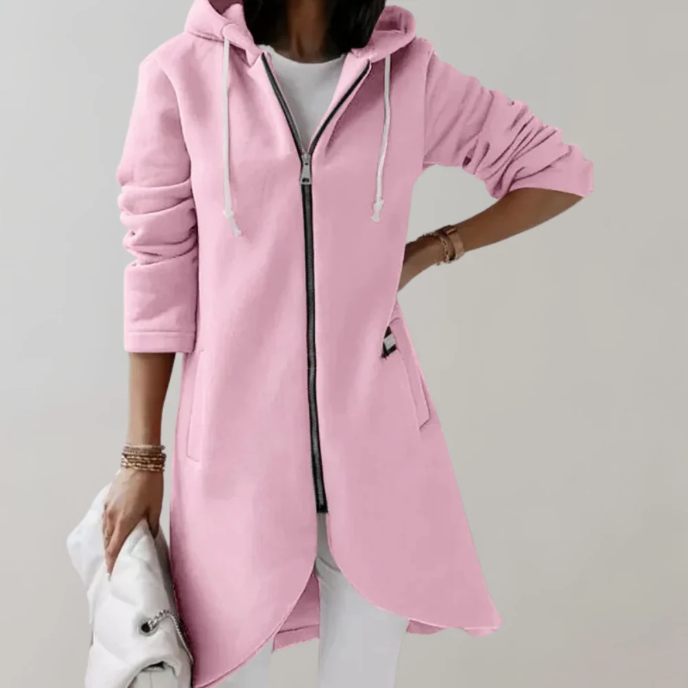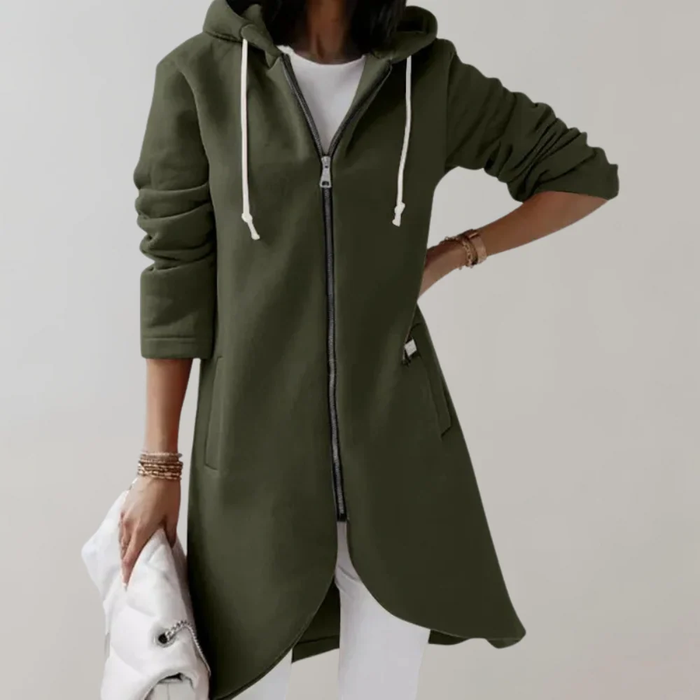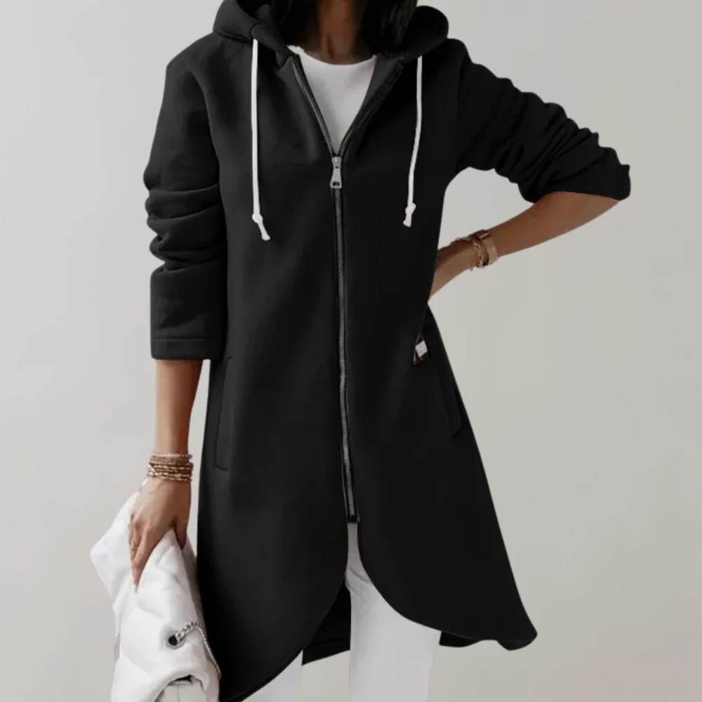 . Style Moderne : Veste longue avec capuche ajustable pour une allure urbaine
