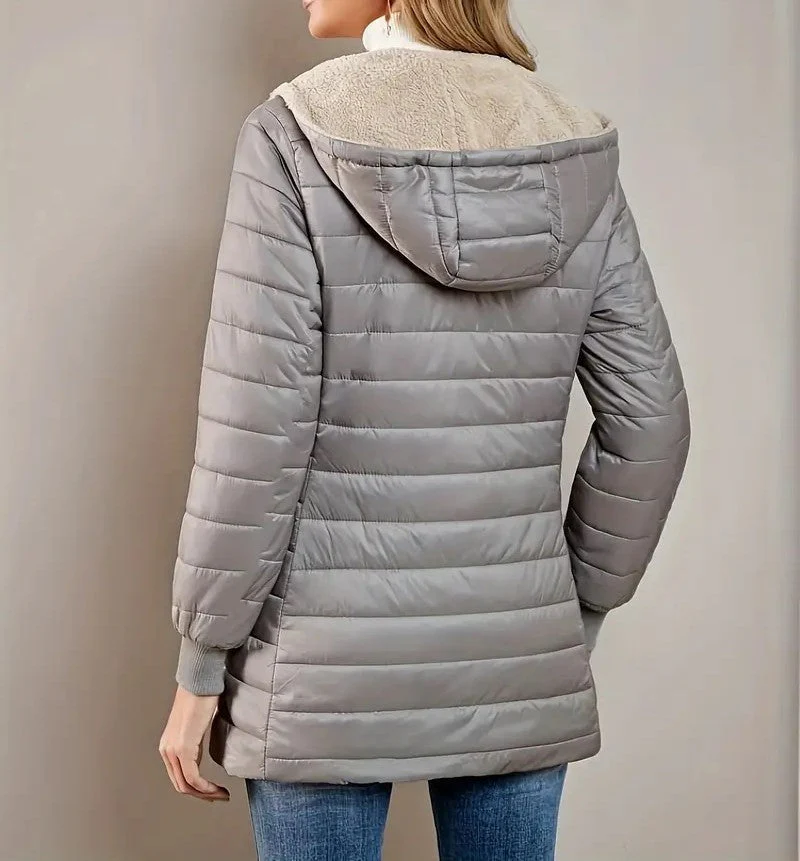 Dotée d’une doublure douce façon fausse fourrure et d’une fermeture zippée pratique, elle combine fonctionnalité et élégance décontractée.