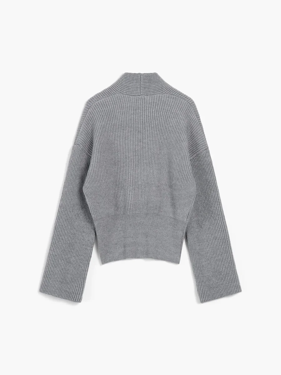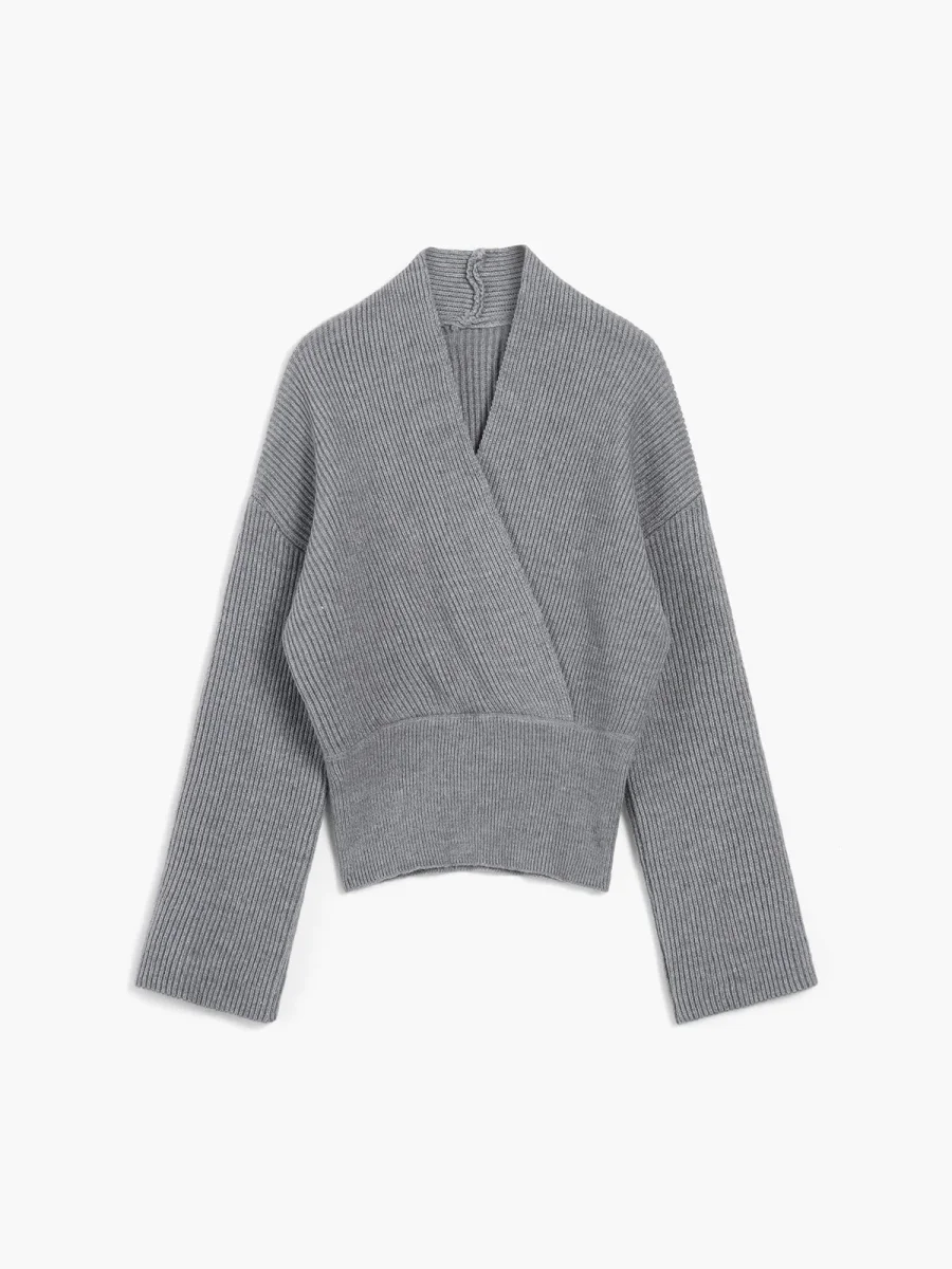 Le Victoria est un pull en maille côtelée gris avec une coupe portefeuille flatteuse qui met en valeur la taille. Son col en V croisé et ses manches légèrement évasées apportent une touche d’élégance intemporelle. Idéal pour un look sophistiqué, au bureau comme en sortie.
