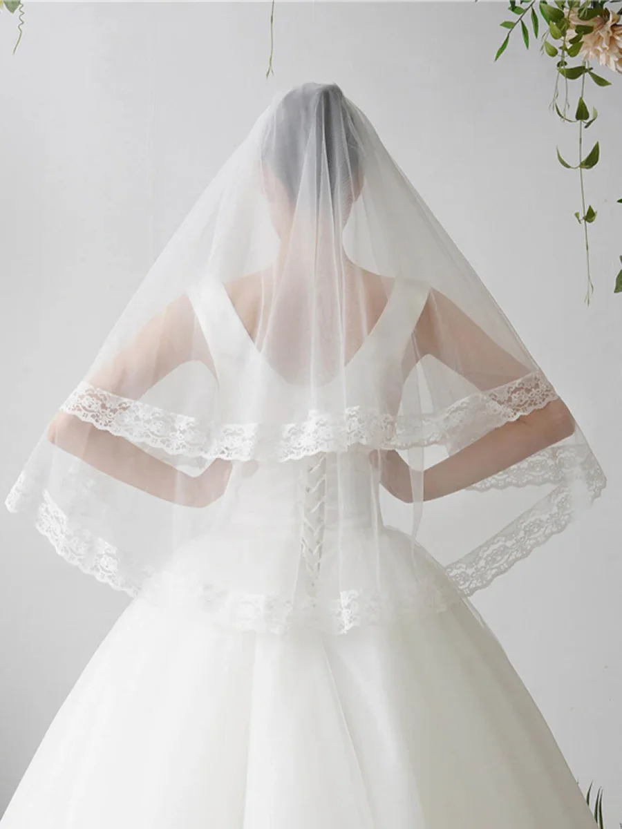 Voile De Mariage Chic Bordé D’Appliques En Dentelle