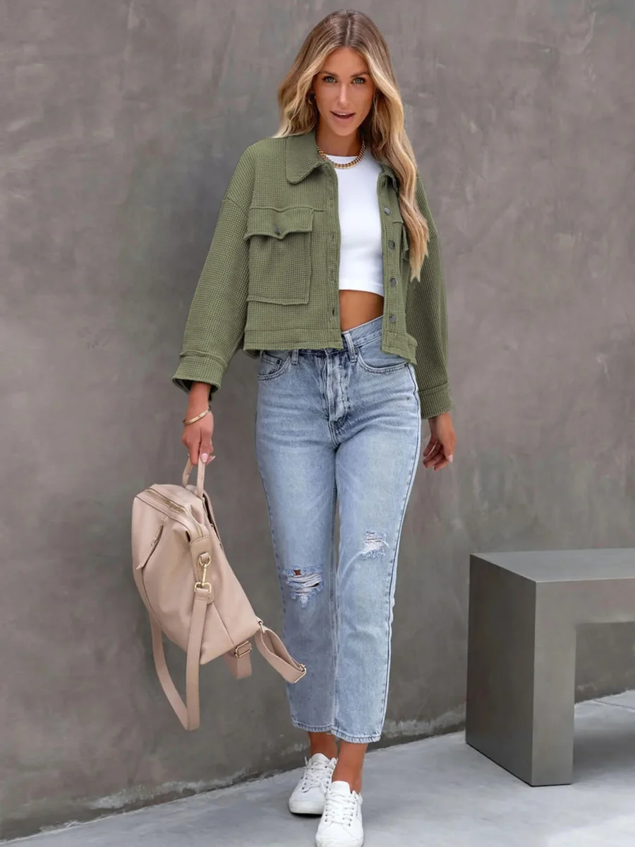 Waffle Short Jacket | Casual Style and Honeycomb Texture