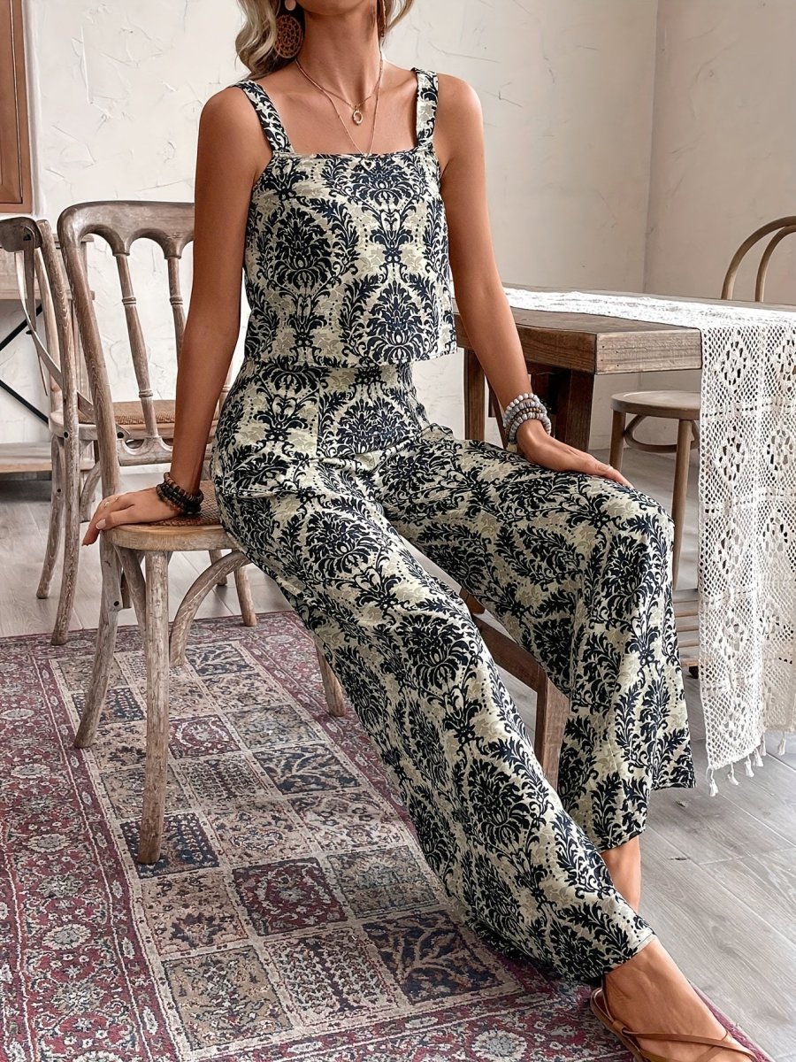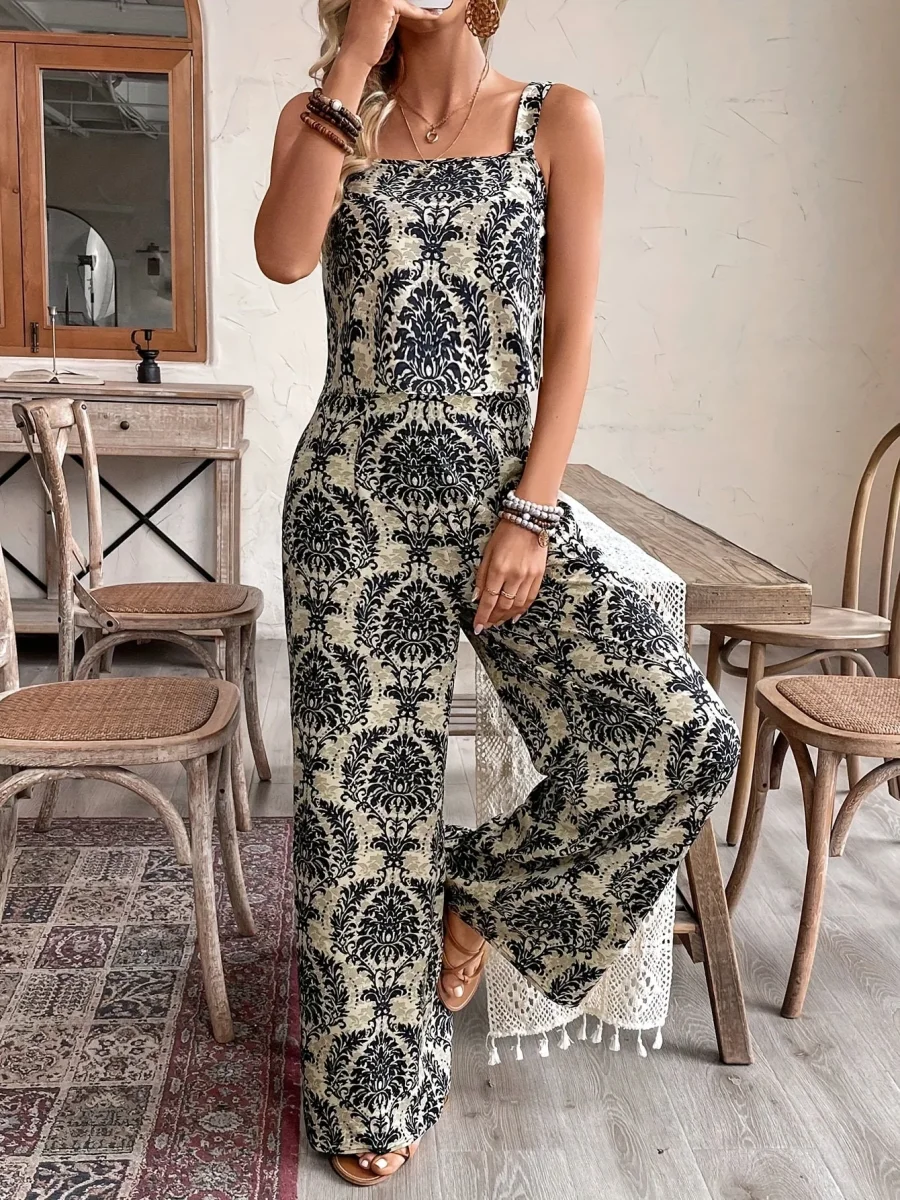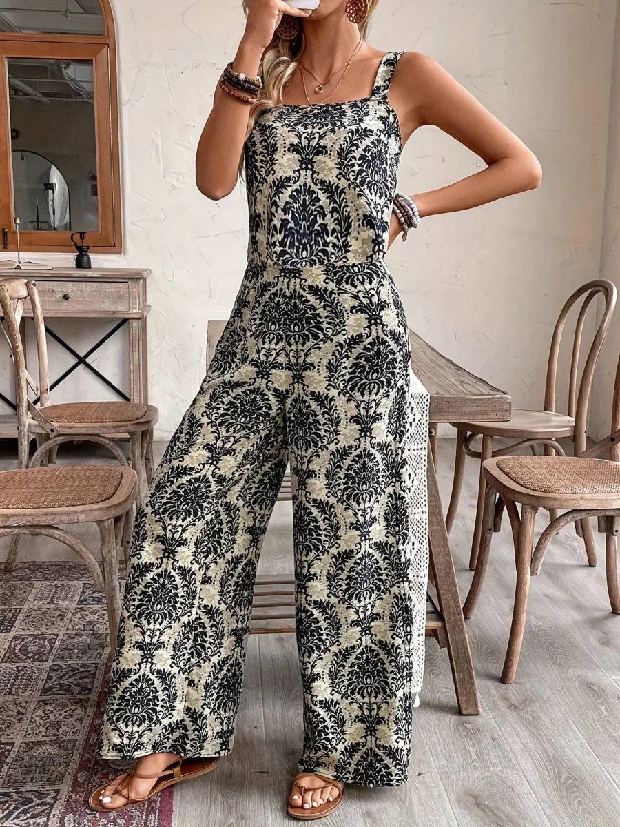 Wide Baroque Print Jumpsuit | Casual Elegance