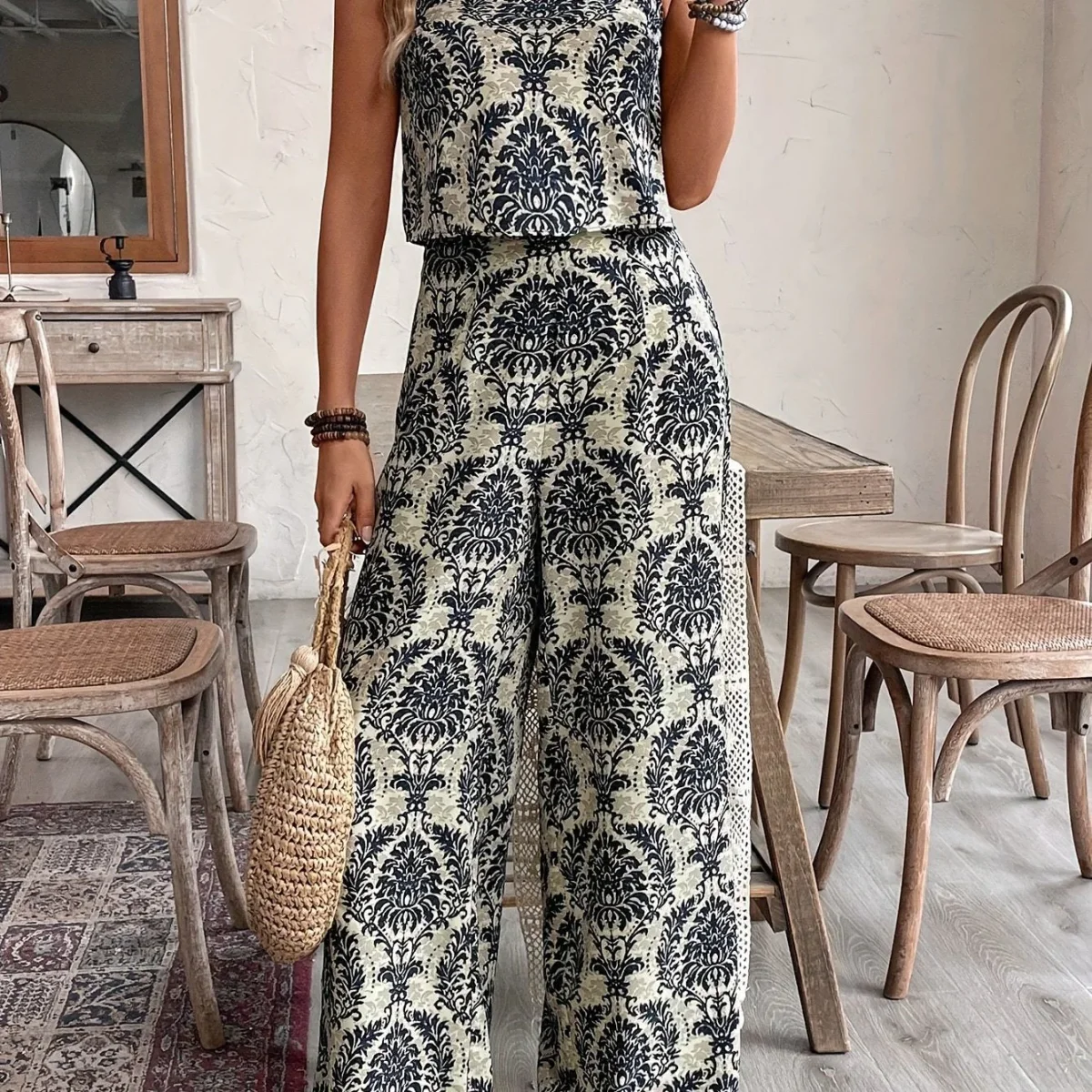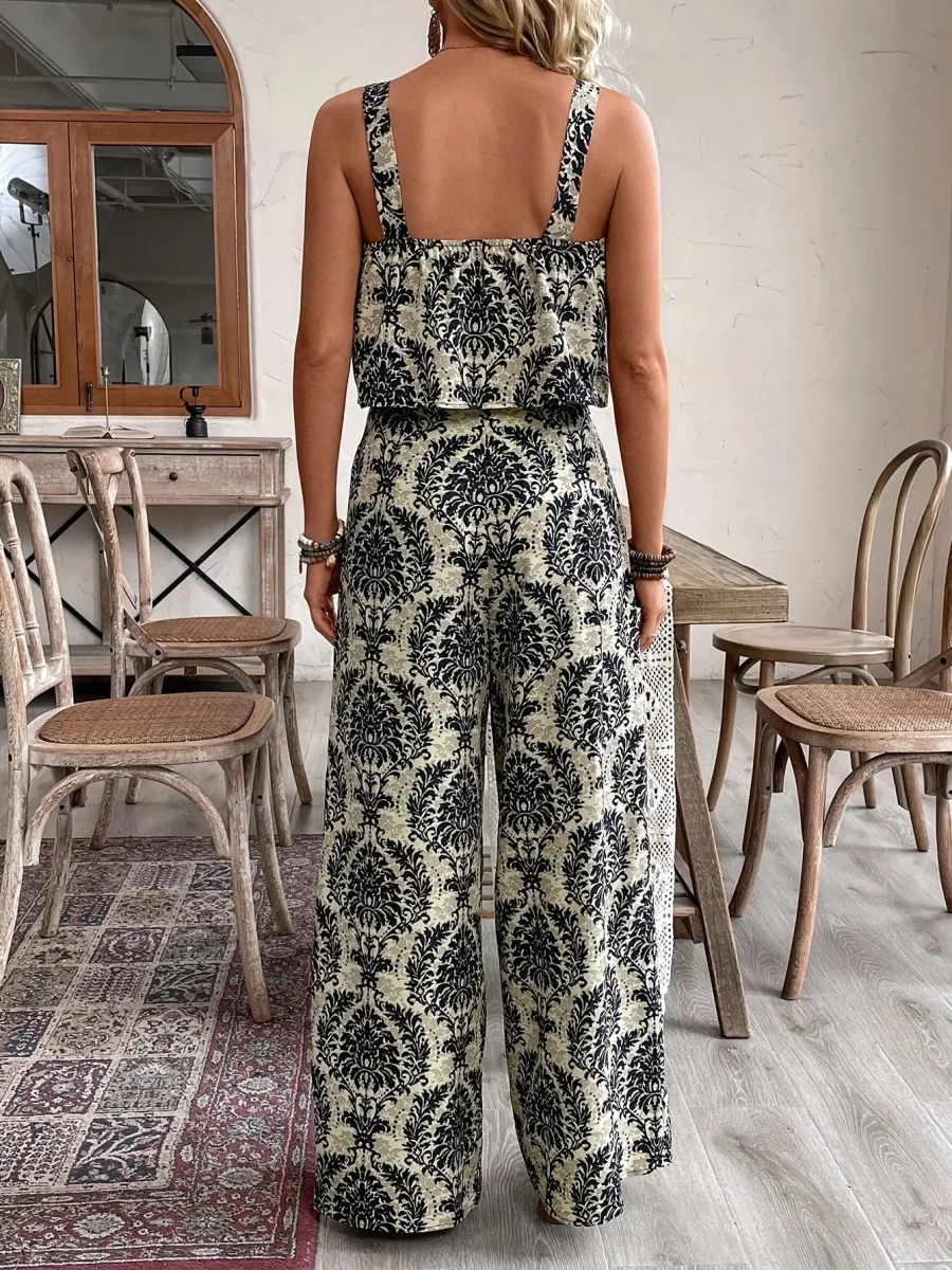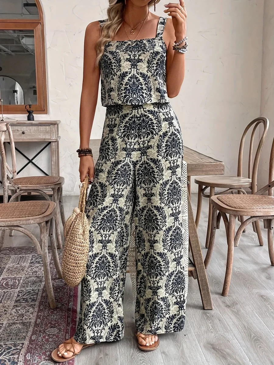 Wide Baroque Print Jumpsuit | Casual Elegance