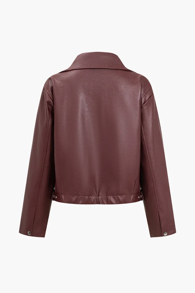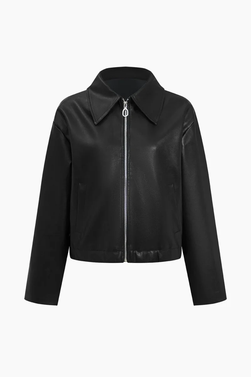 Wide Collar Leather-effect Zip Jacket | Structured, Timeless Minimalism
