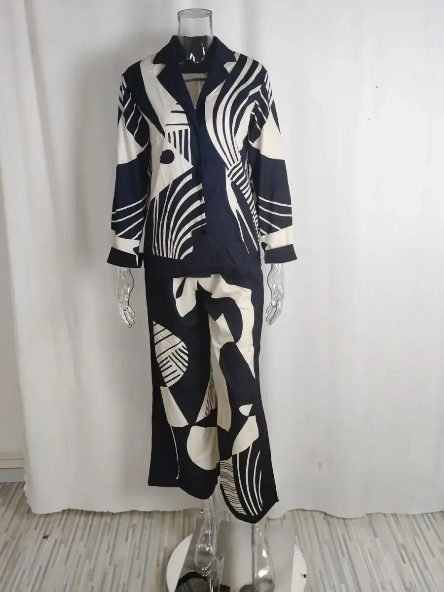 Wide Leg Pants and Abstract Printed Jacket Set | Audacious and Modern
