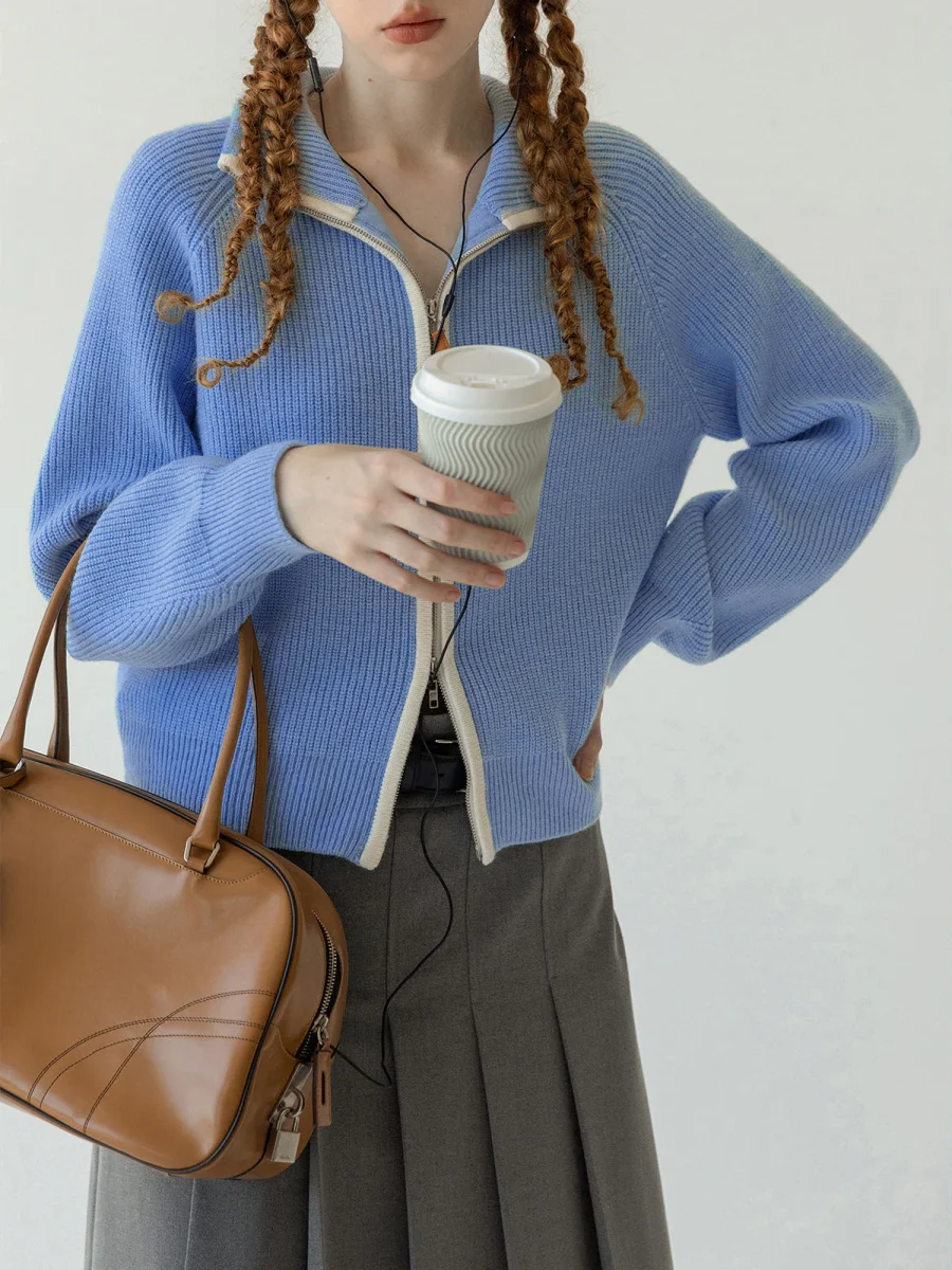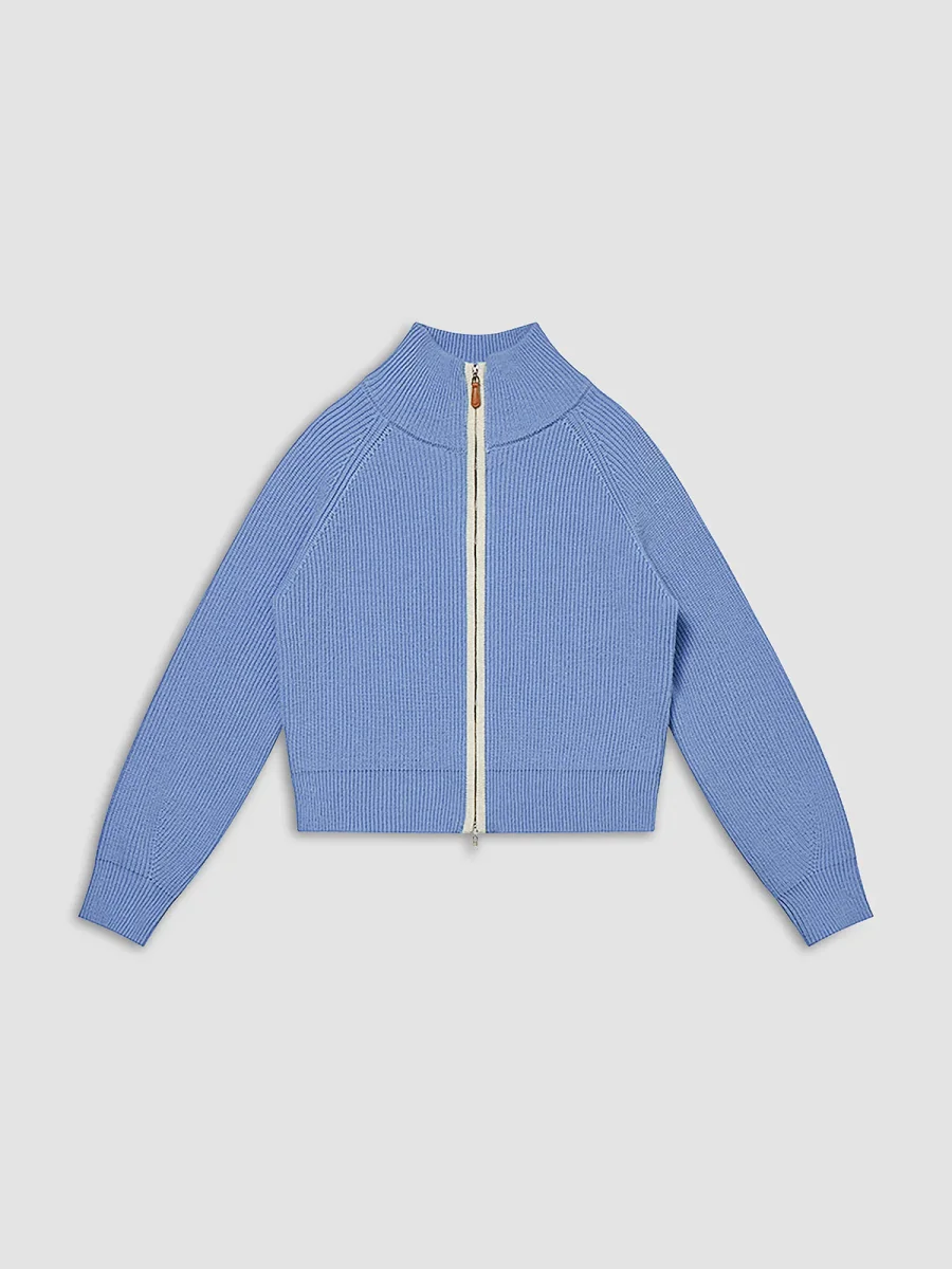 Zipped cardigan | Contrasting stand-up collar | Sporty and elegant
